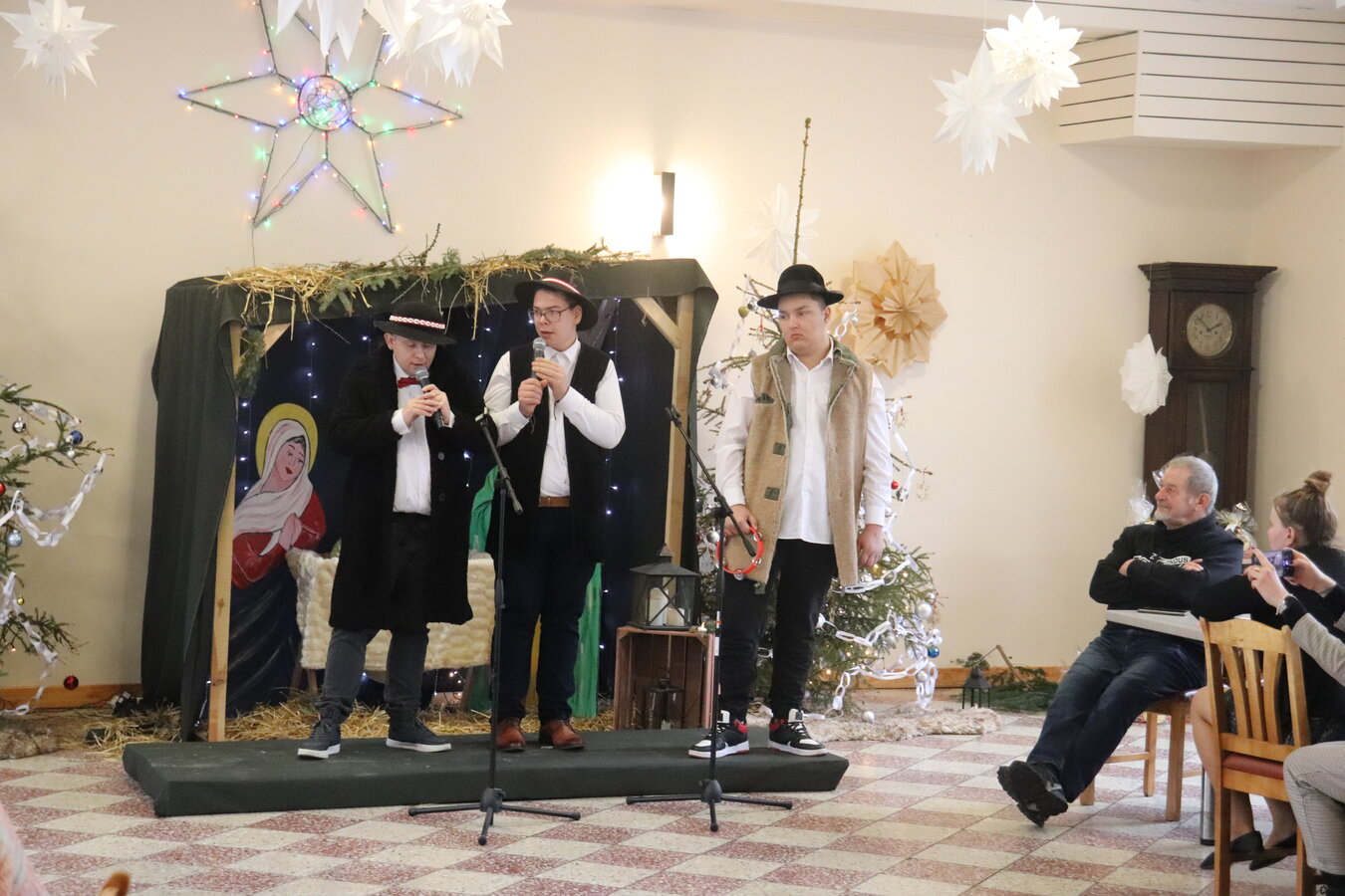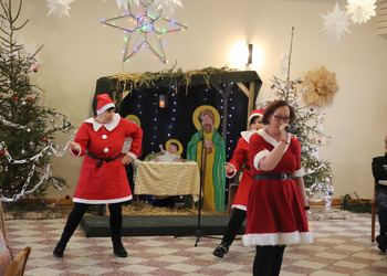 Podczas wydarzenia zaprezentowaliśmy kolędę "Do szopy hej pasterze" oraz utwór "Jest taki dzień", wkładając całe serce w nasze występy. Gospodarze zadbali o wspaniałą atmosferę, serwując pyszny obiad i słodki poczęstunek, które dodatkowo umiliły czas.