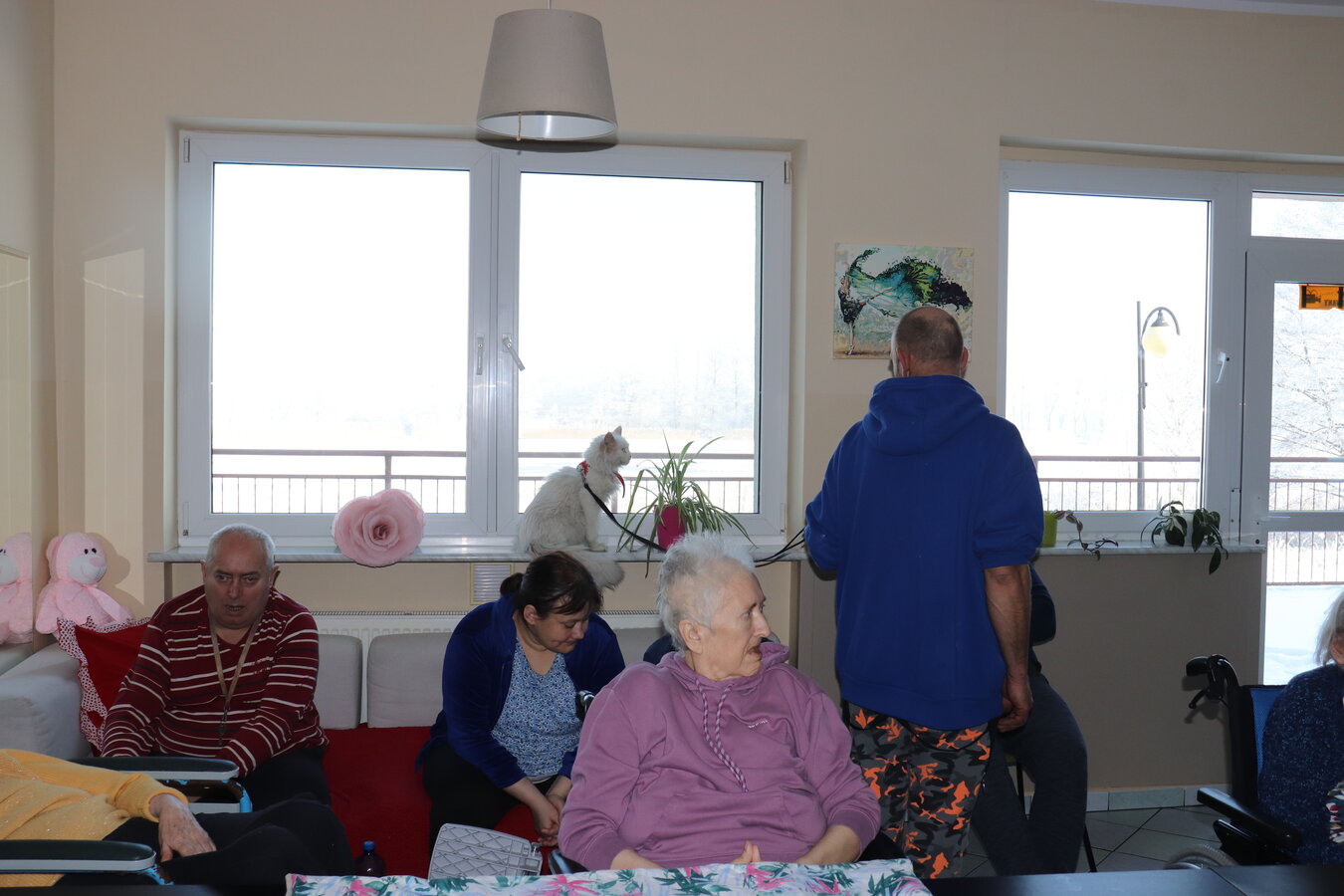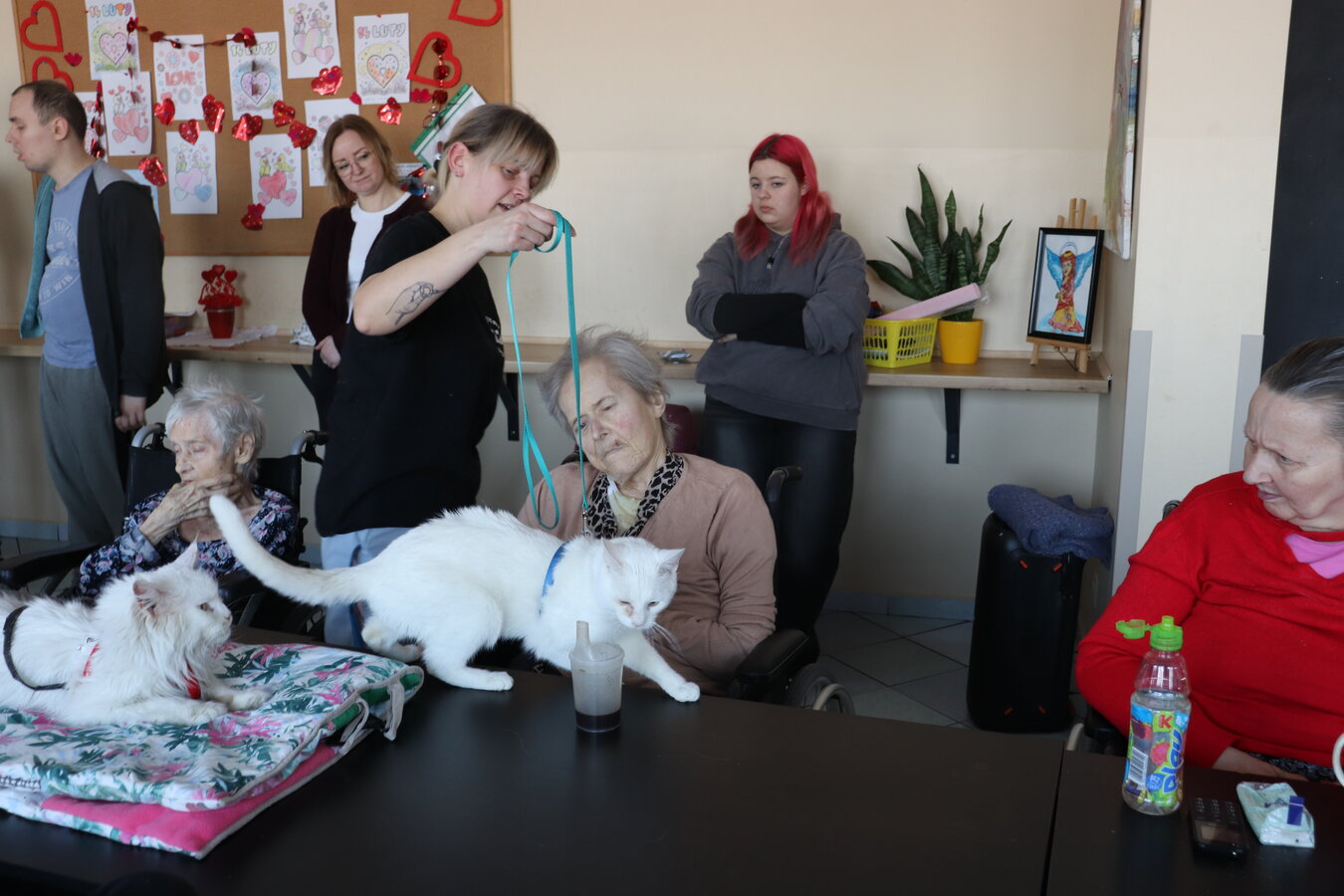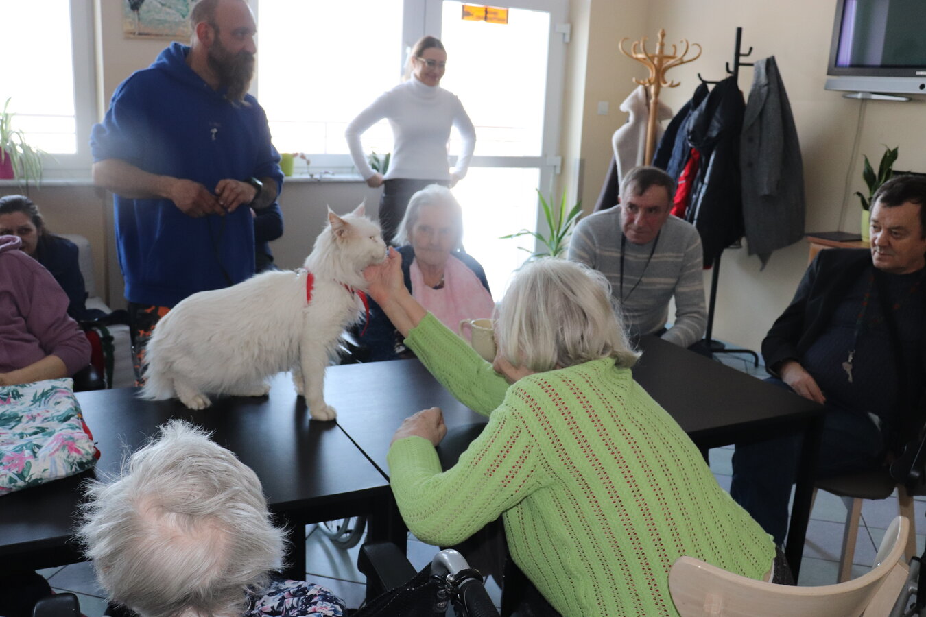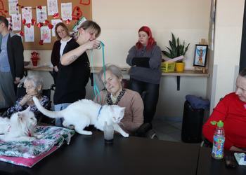 Z okazji Dnia Kota mieliśmy wyjątkowych gości! Nasz Dom odwiedziły urocze koty należące do jednej z terapeutek. Te futrzane czworonogi wniosły mnóstwo radości, ciepła i pozytywnej energii. Mieszkańcy mieli okazję je pogłaskać, pobawić się z nimi i posłuchać ciekawostek o kocich zwyczajach. Takie spotkania to nie tylko przyjemność, ale też forma terapii!