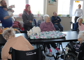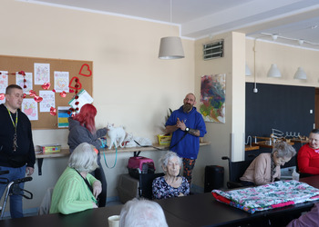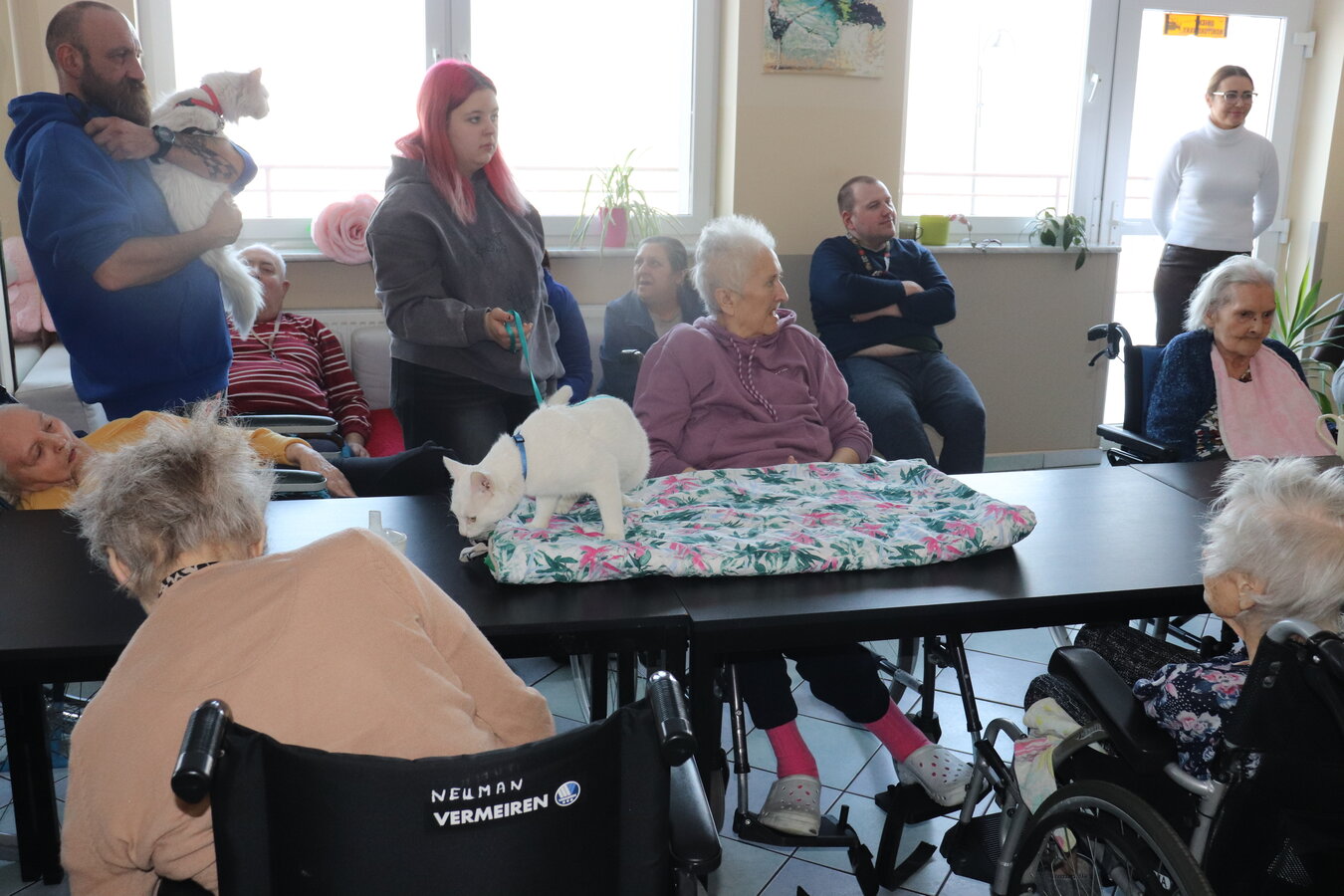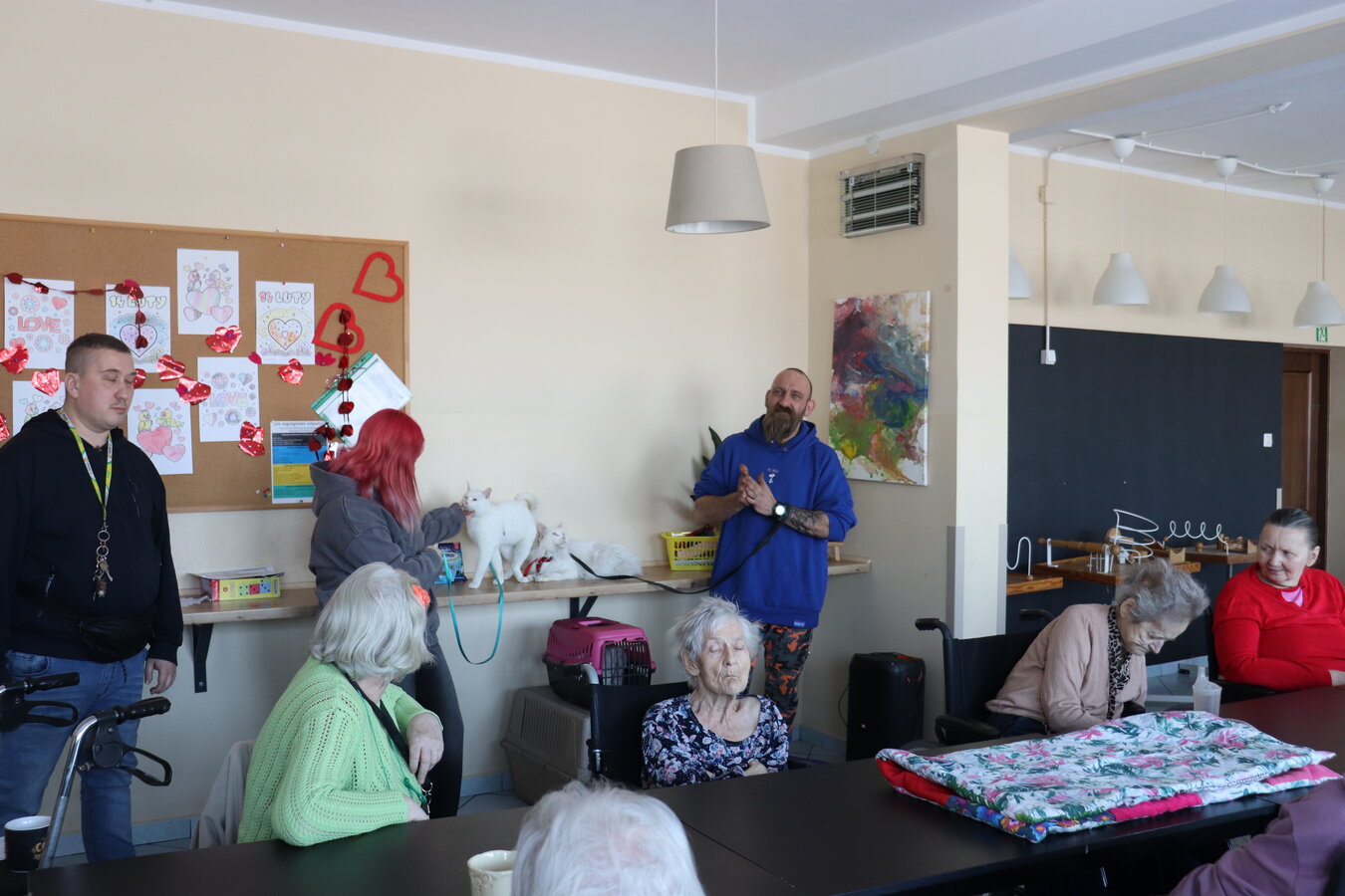 Z okazji Dnia Kota mieliśmy wyjątkowych gości! Nasz Dom odwiedziły urocze koty należące do jednej z terapeutek. Te futrzane czworonogi wniosły mnóstwo radości, ciepła i pozytywnej energii. Mieszkańcy mieli okazję je pogłaskać, pobawić się z nimi i posłuchać ciekawostek o kocich zwyczajach. Takie spotkania to nie tylko przyjemność, ale też forma terapii!