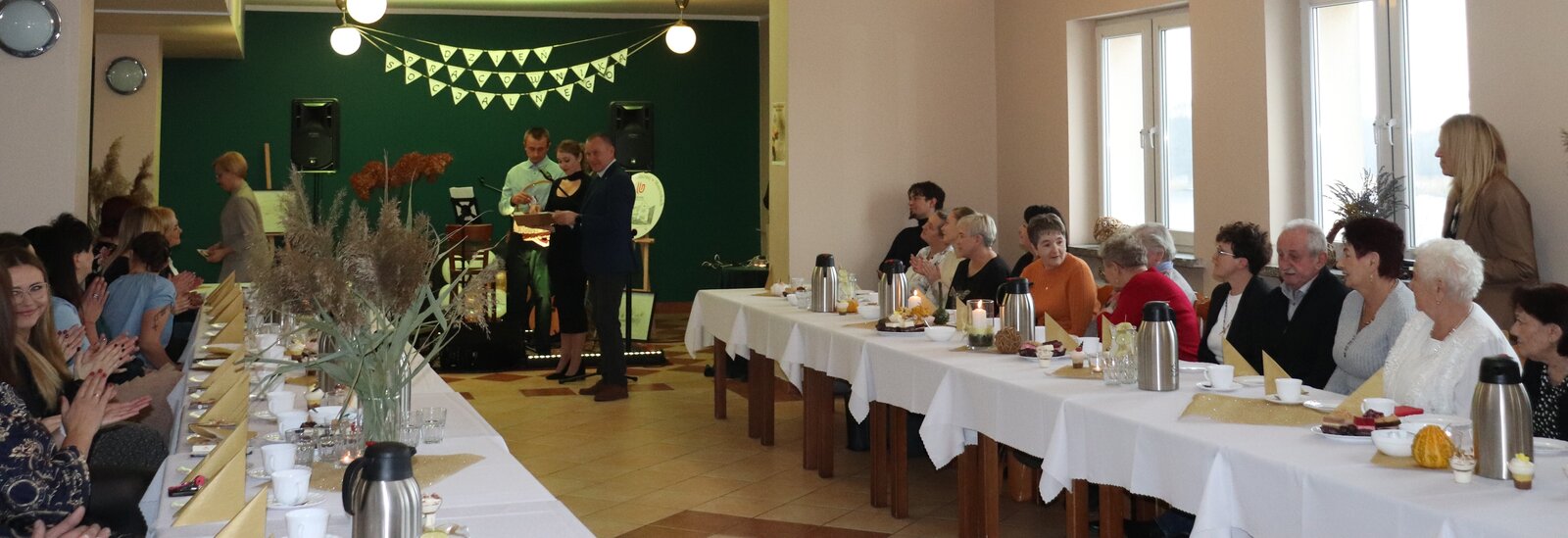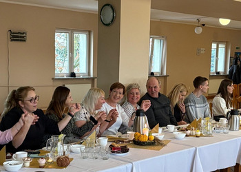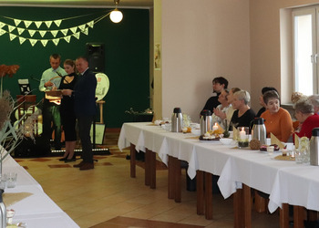 Z tej okazji Starosta Kościański Pan Artur Opas oraz Pani Dyrektor Joanna Bartek spotkali się z obecnymi i byłymi pracownikami naszego Domu, aby złożyć im życzenia i podziękować za codzienną pracę na rzecz mieszkańców.