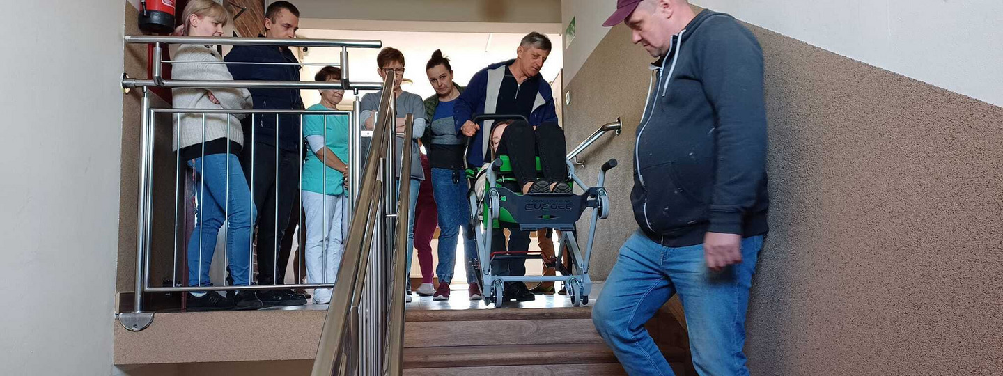 Ćwiczenia z krzesełka ewakuacyjnego dla pracowników w naszym Domu. Ważne, aby regularnie ćwiczyć i odświeżać wiedzę na temat ewakuacji. Bezpieczeństwo personelu i mieszkańców zawsze na pierwszym miejscu!