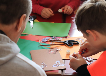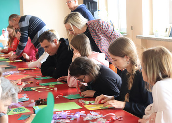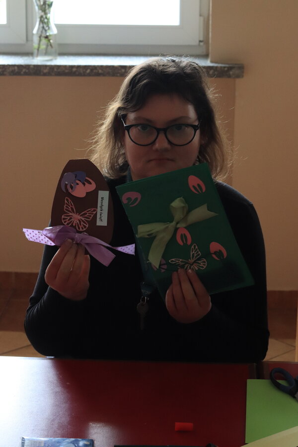 Odwiedzili nas wspaniali wolontariusze z Zespołu Szkół w Jerce. Wspólnie przygotowaliśmy kartki wielkanocne - było kolorowo, kreatywnie i bardzo radośnie! O muzykę w tle zadbał Pan Janusz grając na akordeonie. Co więcej jedna z wolontariuszek razem z Panem Benedyktem, stworzyli piękny wiersz.