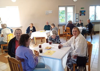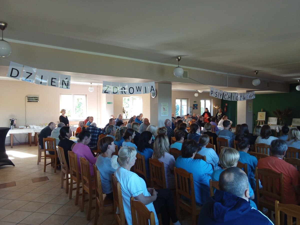 Światowy Dzień Zdrowia Psychicznego w Naszym Domu rozpoczął się od złożenia życzeń zdrowia przez Panią Dyrektor oraz Przewodniczącą Rady Mieszkańców. W dalszej części wydarzenia wyświetlono krótki film edukacyjny opowiadający o schizofrenii, a Przewodnicząca Rady Mieszkańców wręczyła upominki przygotowane przez mieszkańców podczas terapii zajęciowej. Na zakończenie spotkania wszyscy uczestnicy mogli skosztować słodkiego poczęstunku i wypić wspólną kawę, co sprzyjało rozmowom i integracji mieszkańców oraz pracowników. Panowie Starosta oraz Wicestarosta nie mogli odwiedzić nas tego dnia, jednak przesłali dla pracowników i mieszkańców serdeczne życzenia oraz drobny upominek.
