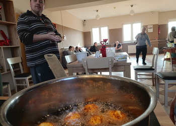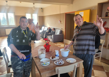 Urodziny Mieszkańców urodzonych w tym miesiącu świętowaliśmy w Tłusty Czwartek! Oprócz tradycyjnych obchodów na jadalni - z pysznym tortem przygotowanym przez naszą terapeutkę Karolinę i odśpiewaniem Sto lat - wspólnie przygotowaliśmy mini pączki serowe.