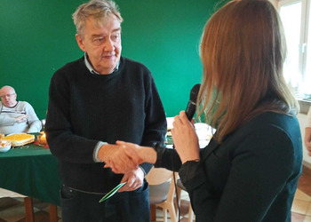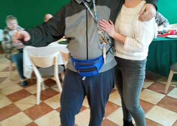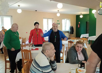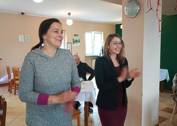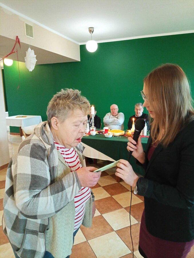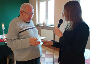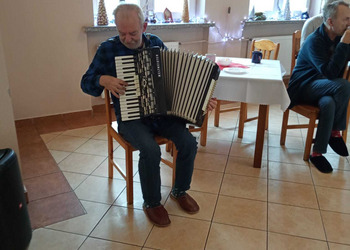 Podczas uroczystości Pan Janusz zadbał o wyjątkową atmosferę grając piękne melodie na akordeonie. Pani Dyrektor złożyła solenizantom serdeczne życzenia, wręczając im pamiątkowe kartki, a całość dopełniło tradycyjne "sto lat".