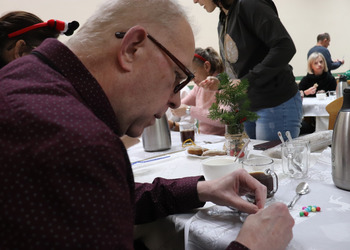 Odwiedziliśmy Dom Pomocy Społecznej w Chumiętkach, gdzie wzięliśmy udział w warsztatach tworzenia ozdób choinkowych.