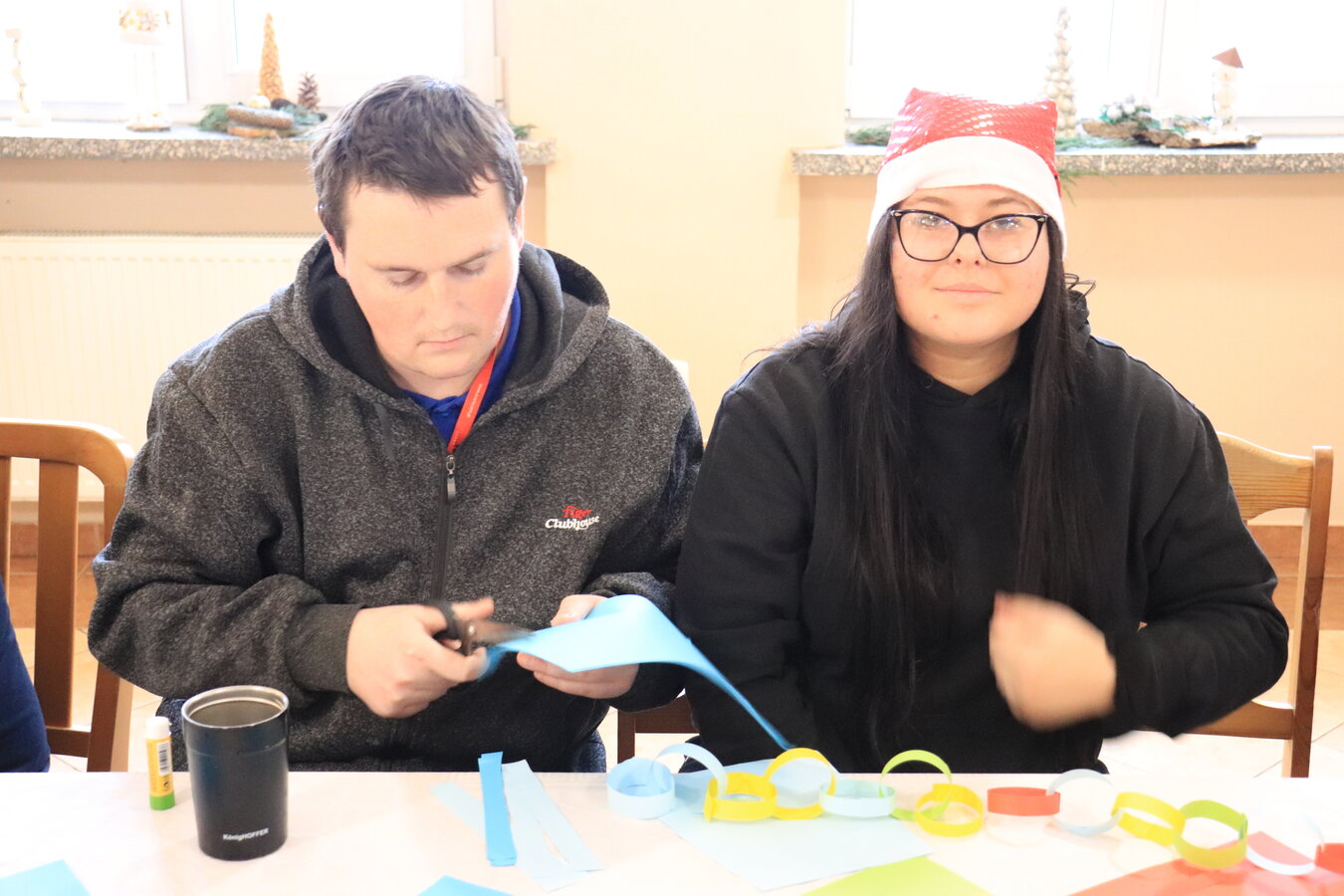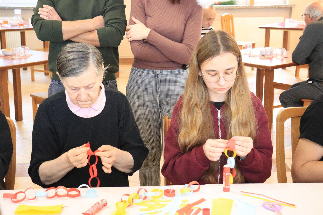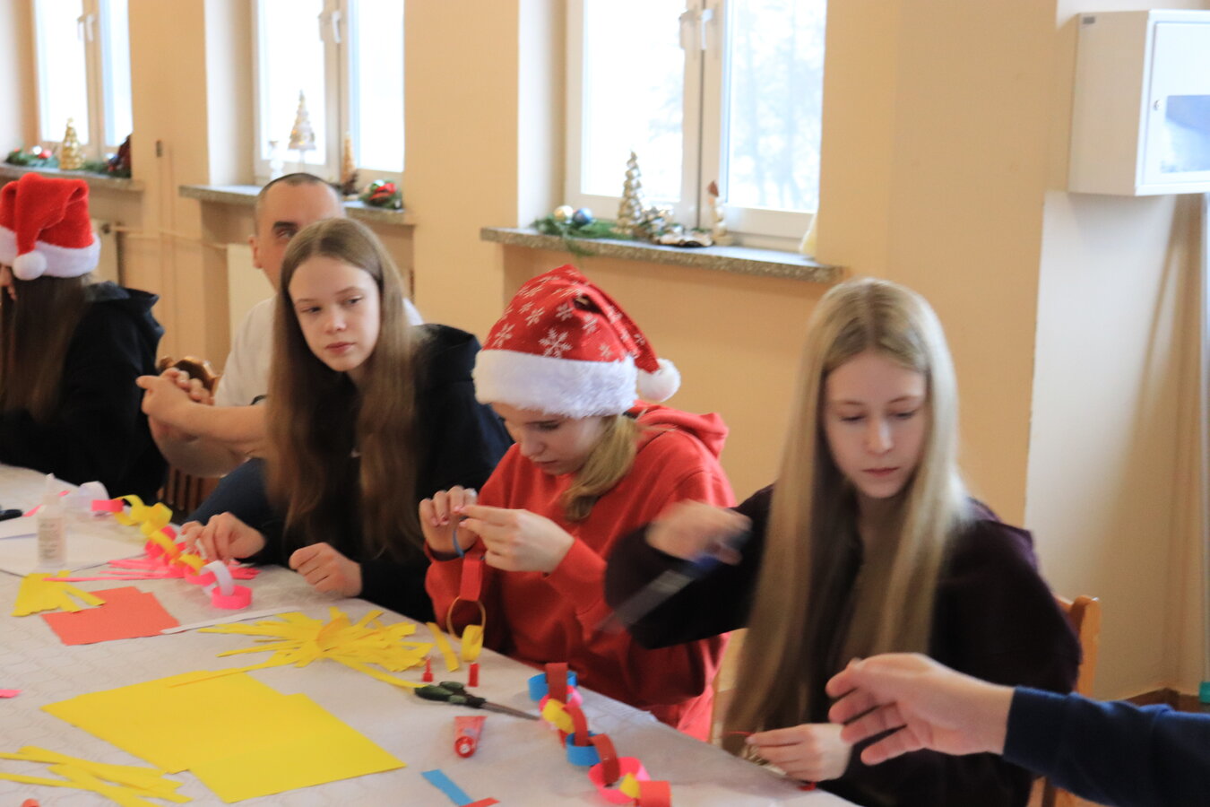 Razem stworzyliśmy barwny łańcuch i wiele pięknych ozdób na choinkę.