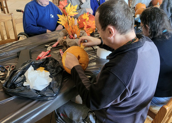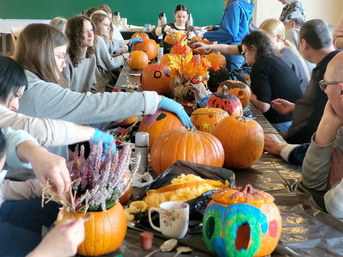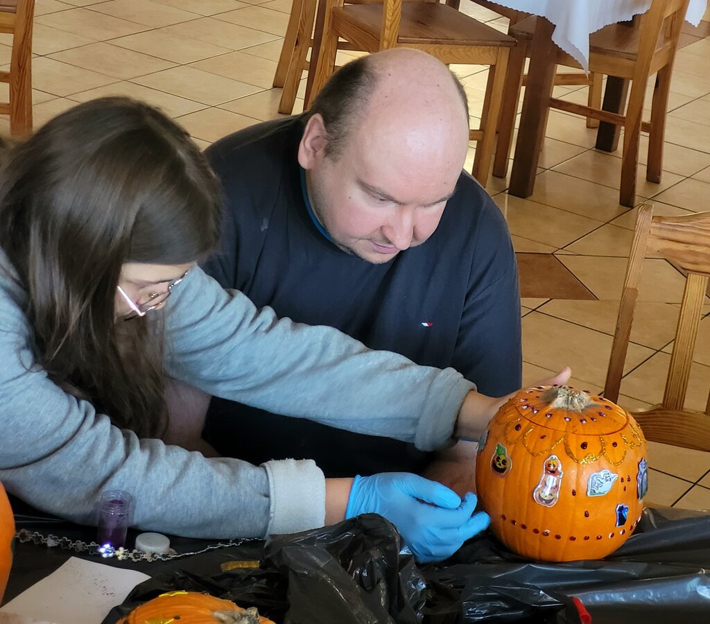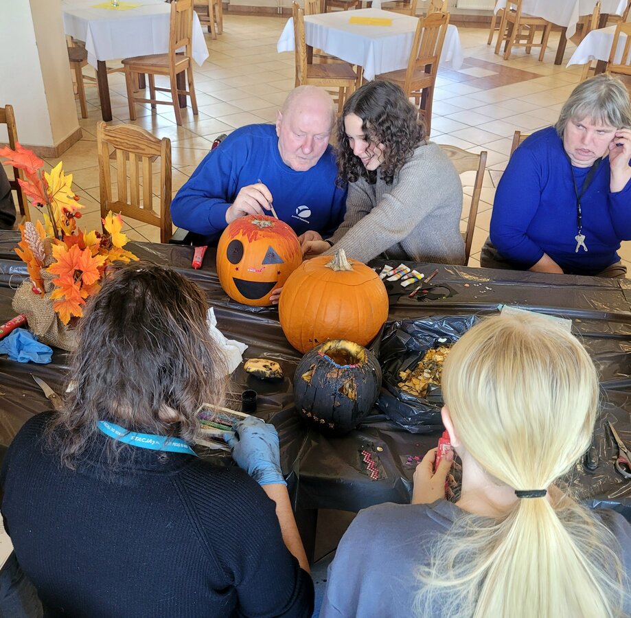 Odwiedzili nas wolontariusze, z zespołu szkół w Krzywiniu, z którymi wspólnie ozdabialiśmy dynie! Mieszkańcy chętnie zaangażowali się w kreatywną zabawę, tworząc wyjątkowe wzory i dekoracje. Dzięki pomocy naszych Gości, powstały prawdziwe dzieła sztuki, które wprowadziły jesienny nastrój do Naszego Domu. Serdecznie dziękujemy wolontariuszom za ich czas i zaangażowanie!