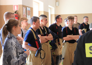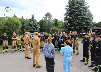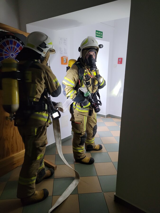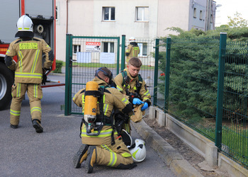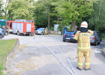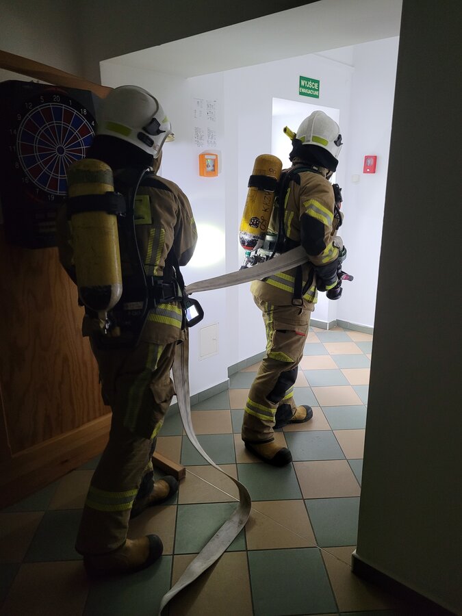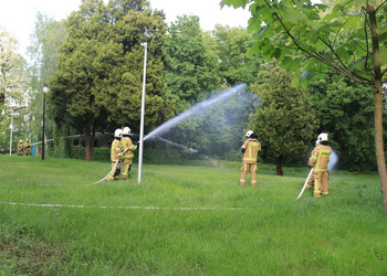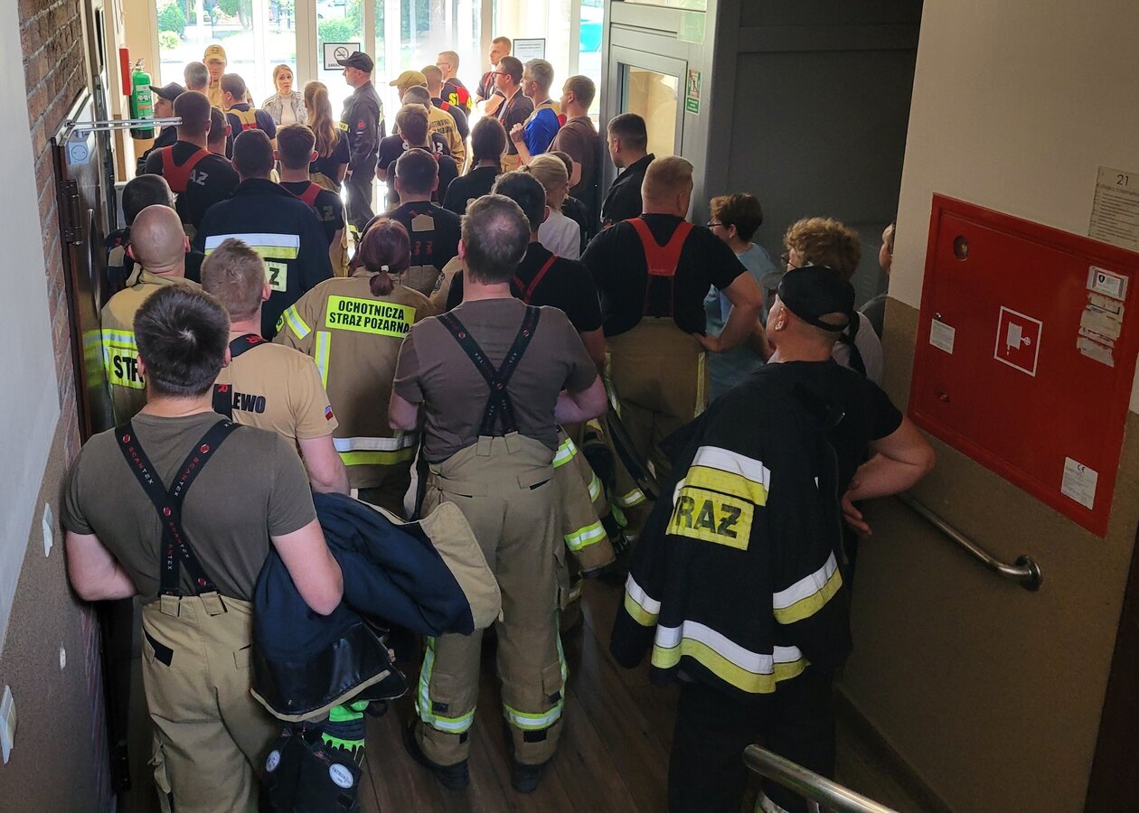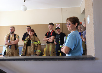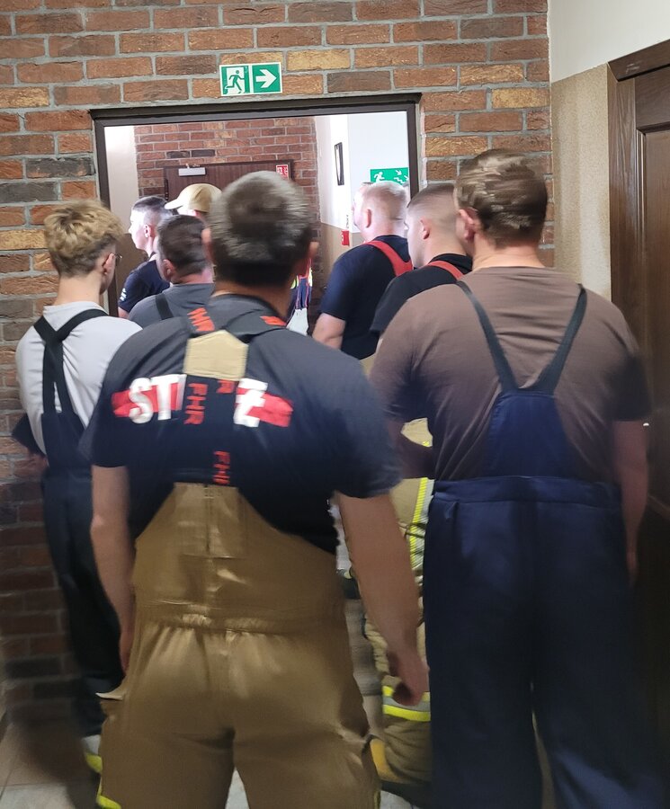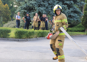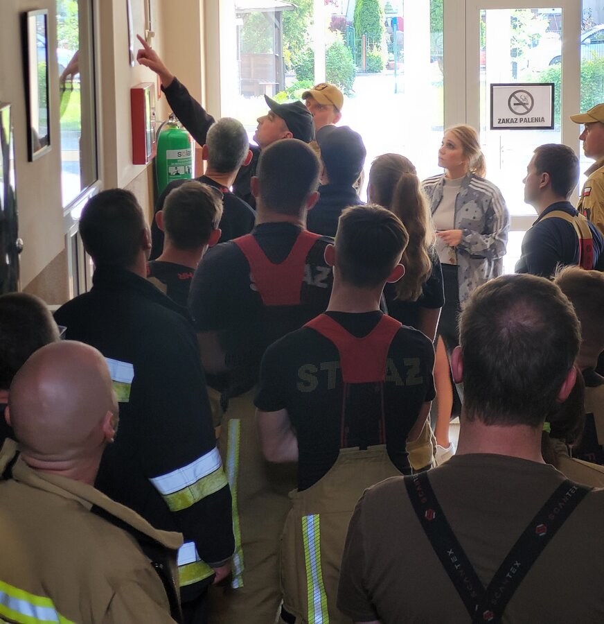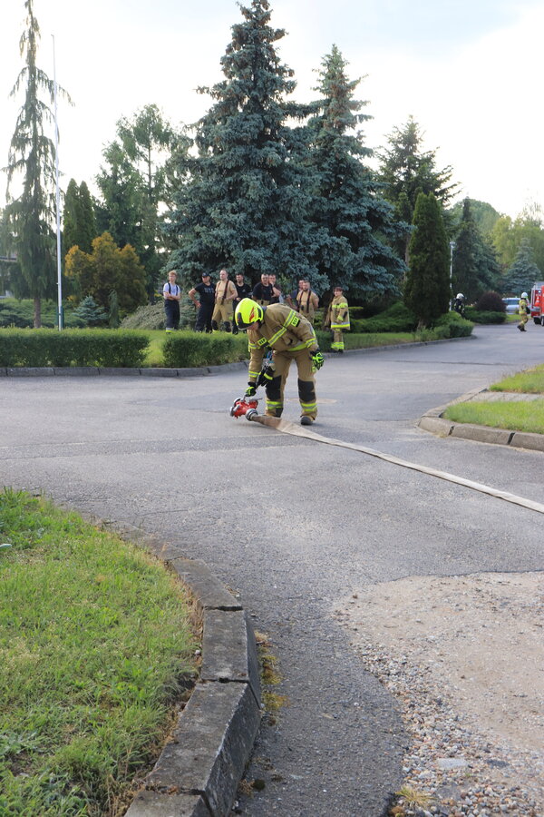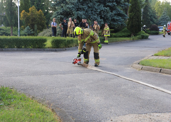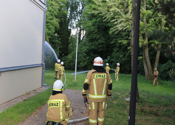Po zakończonej ewakuacji strażacy zaznajomili się z obiektem, a następnie przeprowadzili szkolenie z udzielania pierwszej pomocy dla pracowników z wykorzystaniem defibrylatora AED. Ponadto w ramach ćwiczeń, zasymulowali akcję gaśniczą budynku administracji.