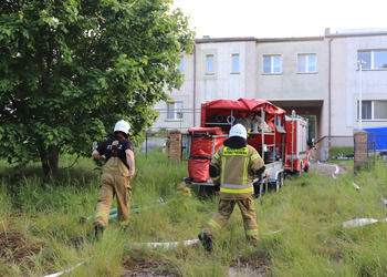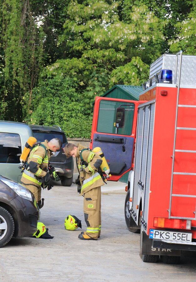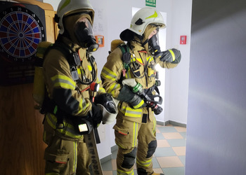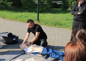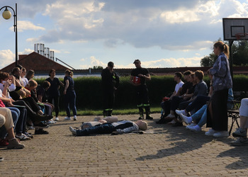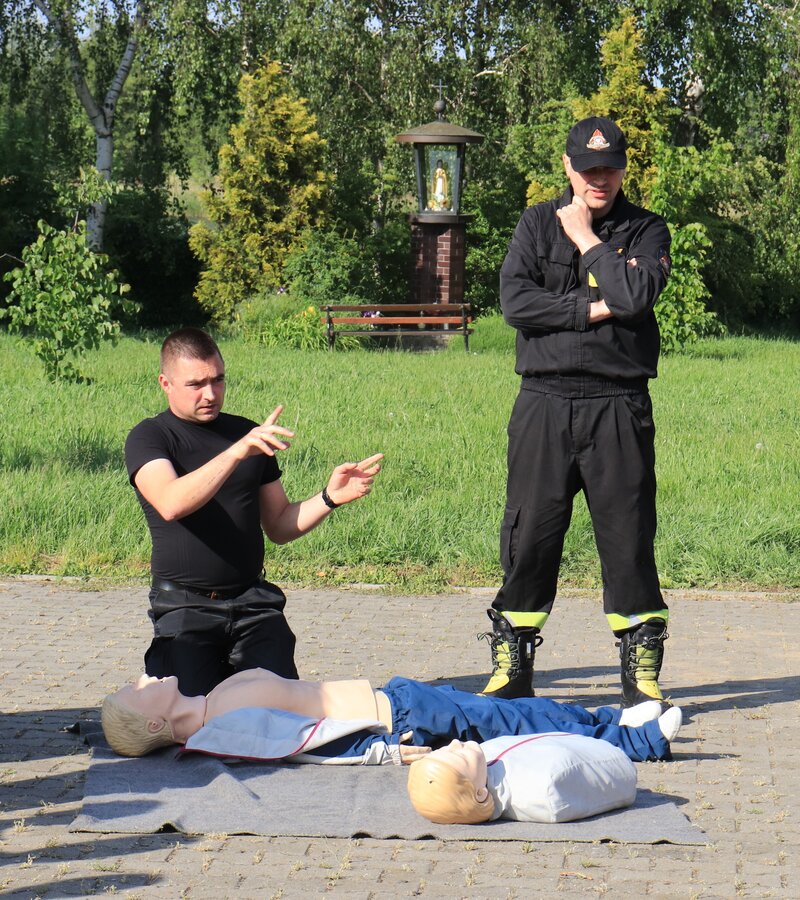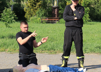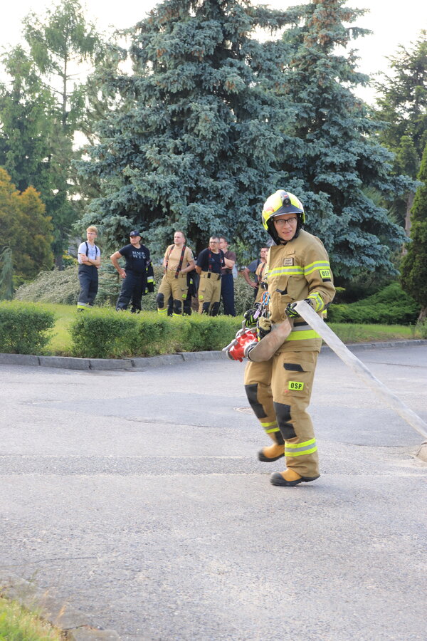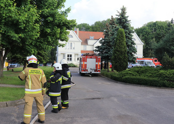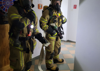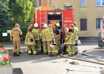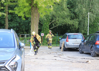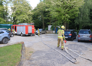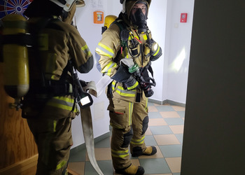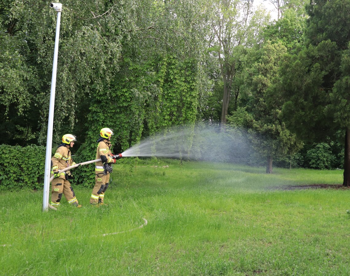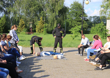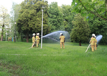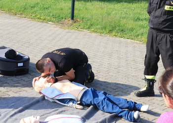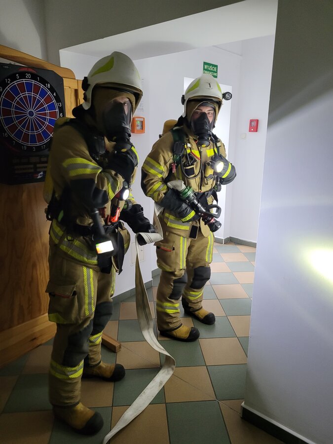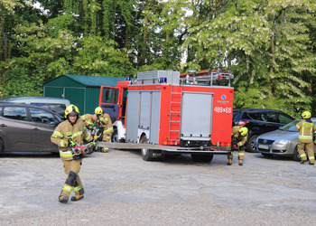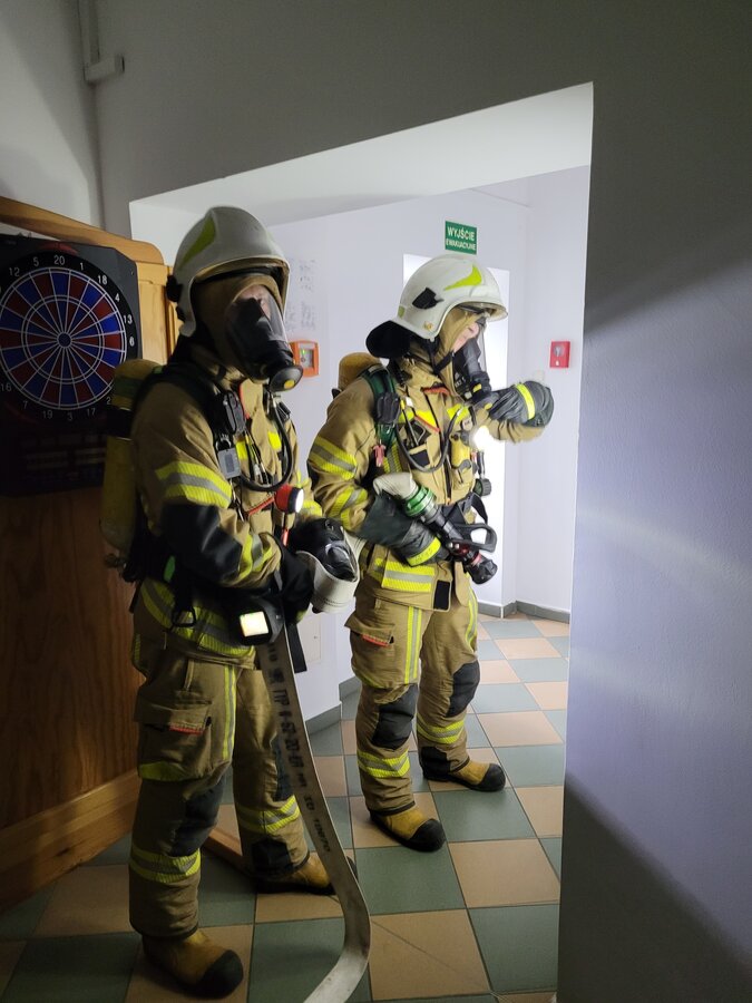 Po zakończonej ewakuacji strażacy zaznajomili się z obiektem, a następnie przeprowadzili szkolenie z udzielania pierwszej pomocy dla pracowników z wykorzystaniem defibrylatora AED. Ponadto w ramach ćwiczeń, zasymulowali akcję gaśniczą budynku administracji.
