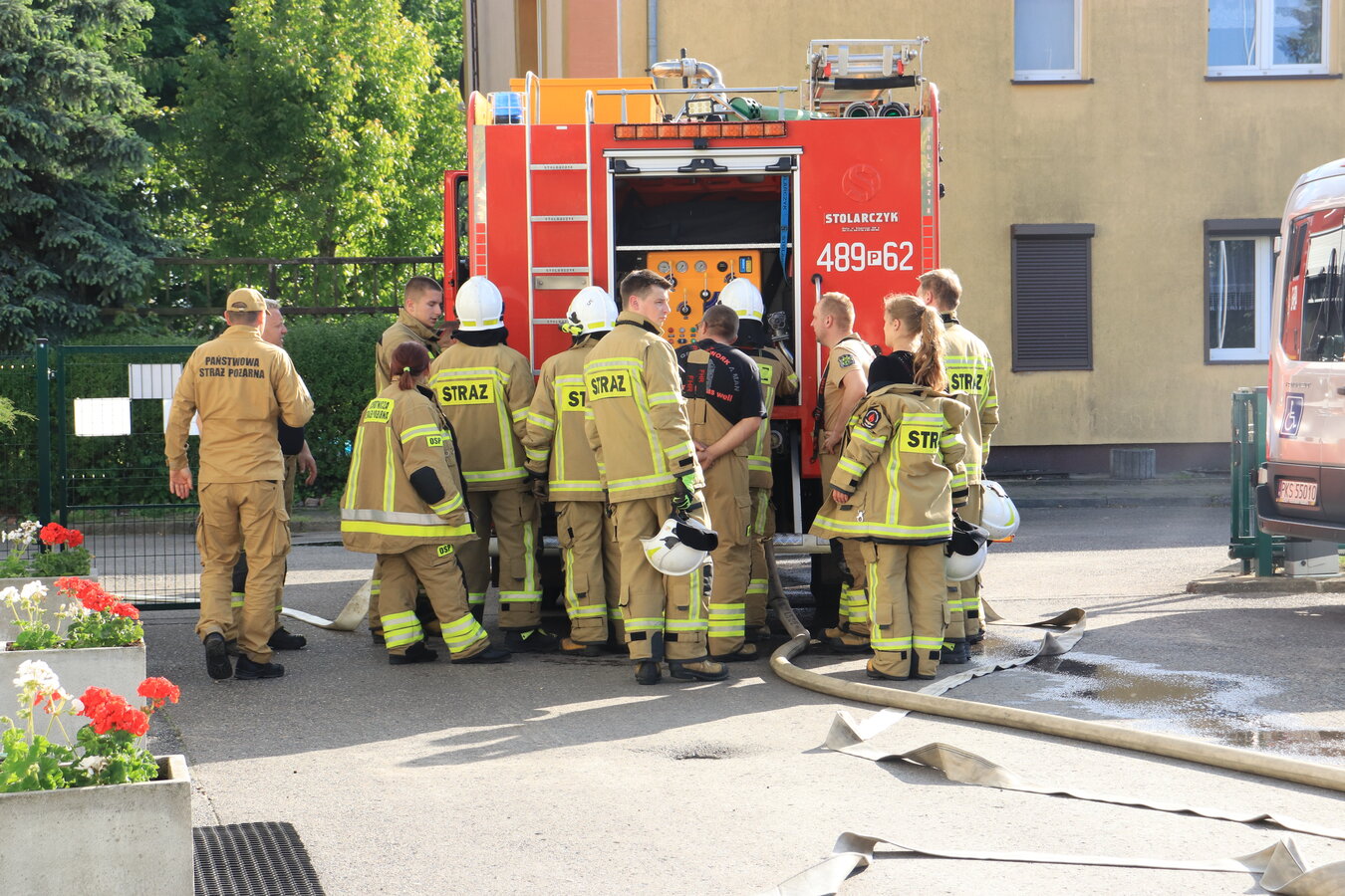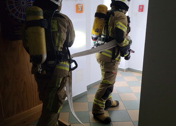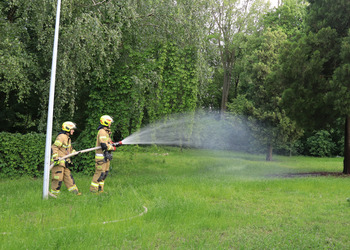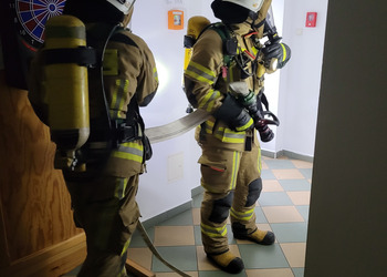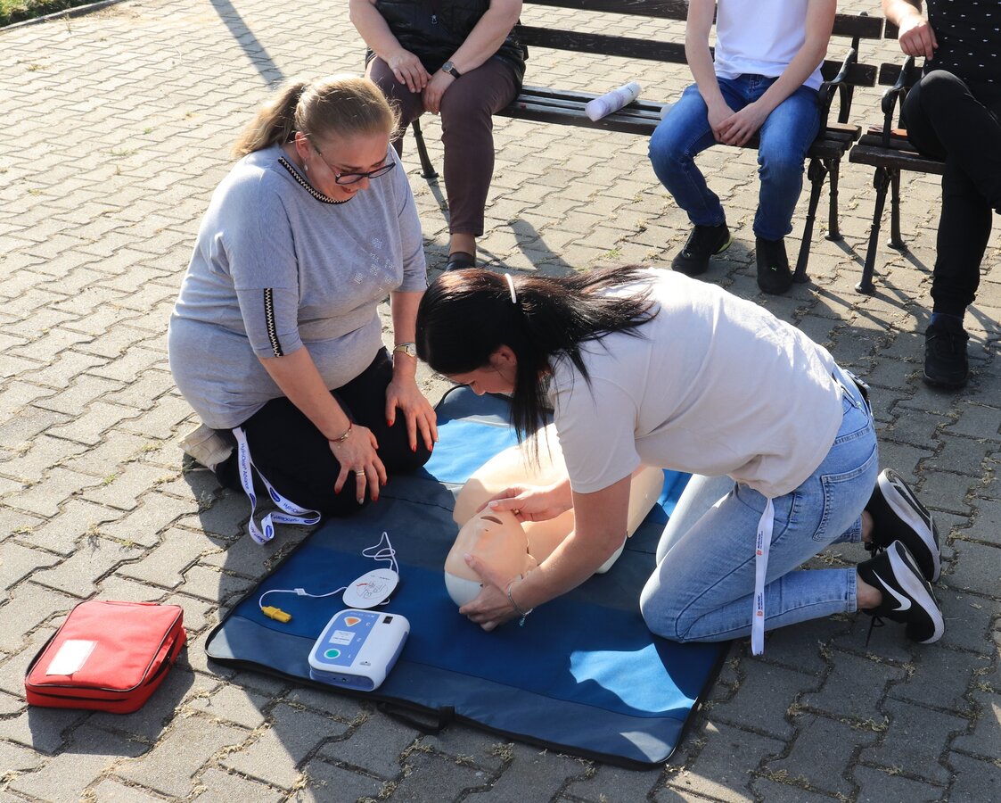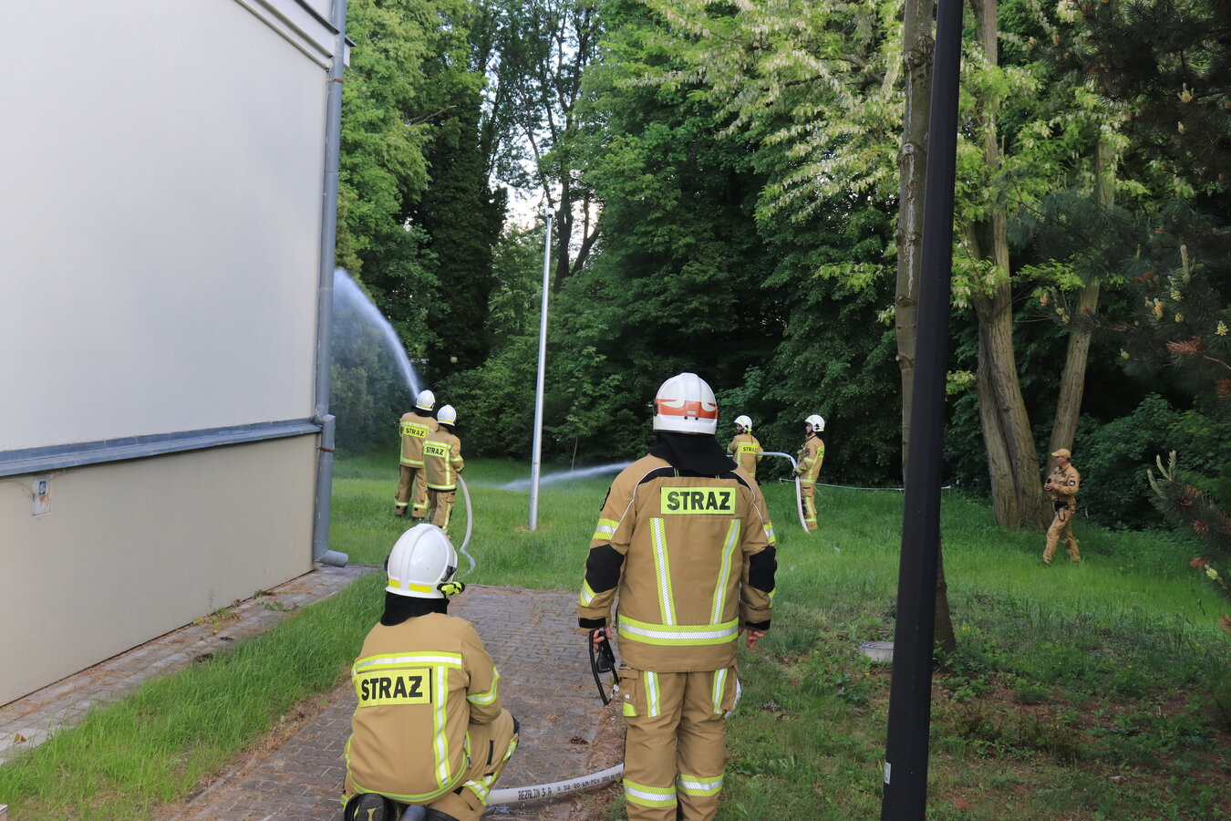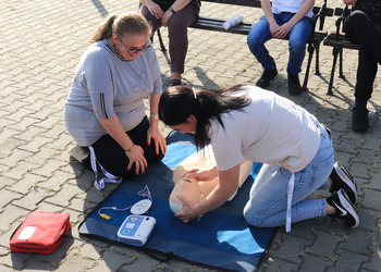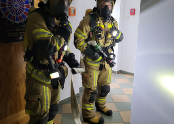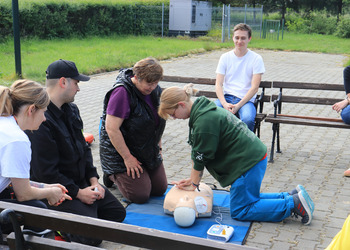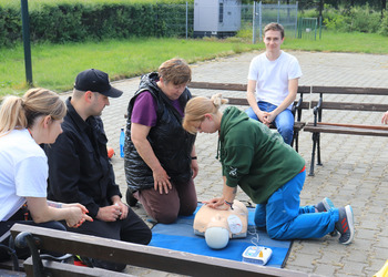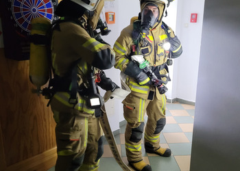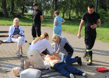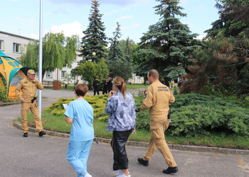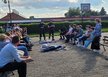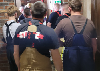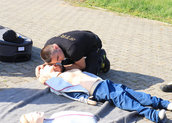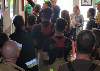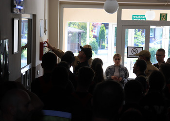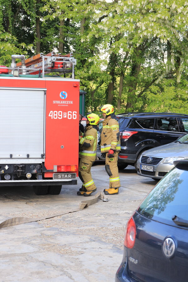 Po zakończonej ewakuacji strażacy zaznajomili się z obiektem, a następnie przeprowadzili szkolenie z udzielania pierwszej pomocy dla pracowników z wykorzystaniem defibrylatora AED. Ponadto w ramach ćwiczeń, zasymulowali akcję gaśniczą budynku administracji.