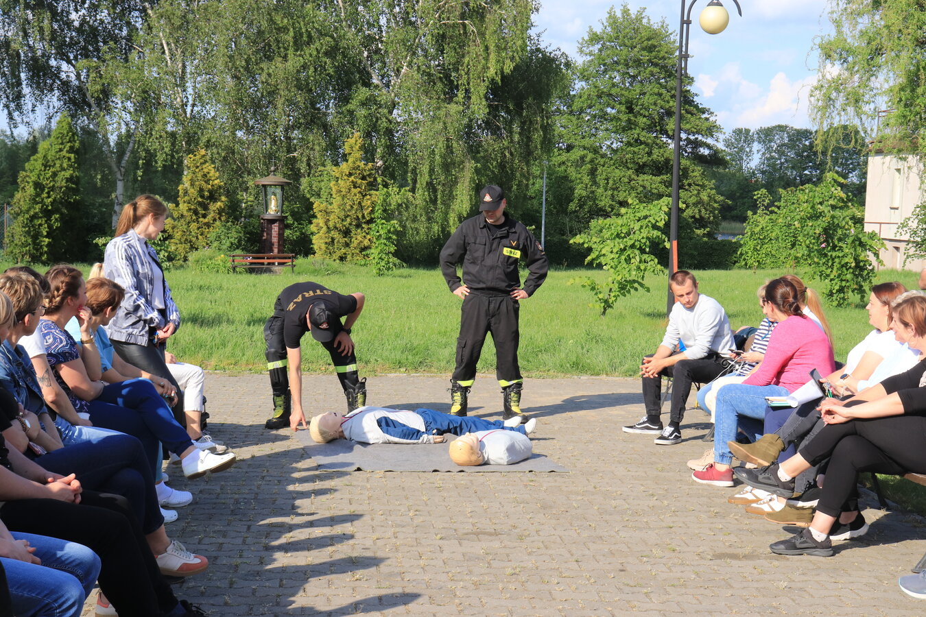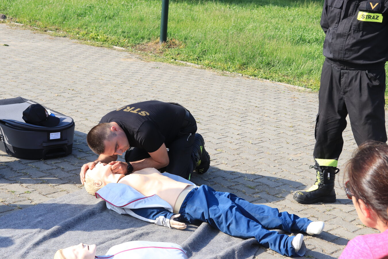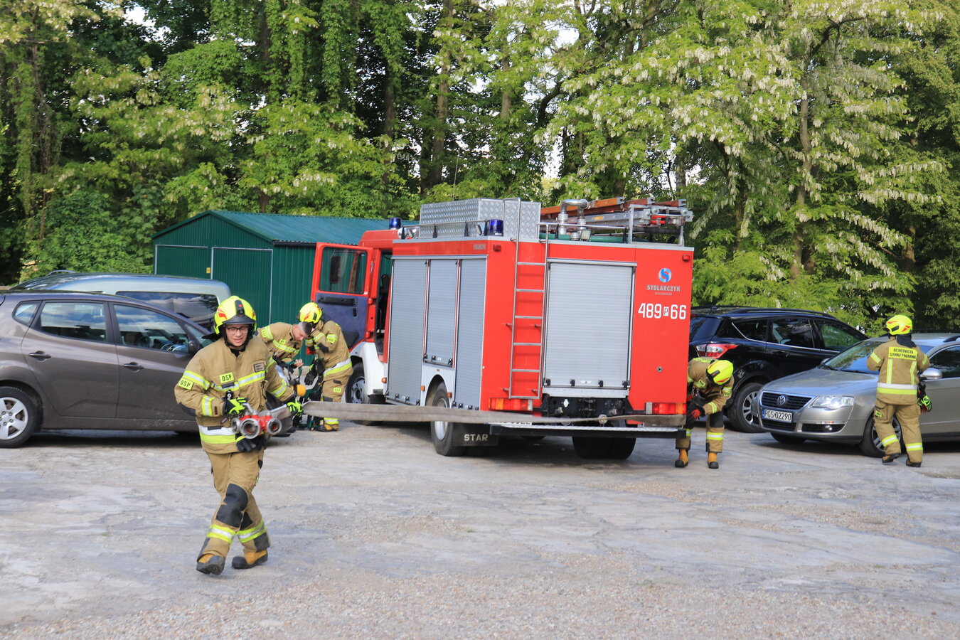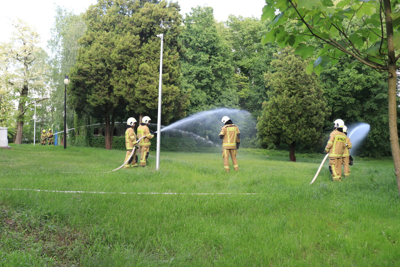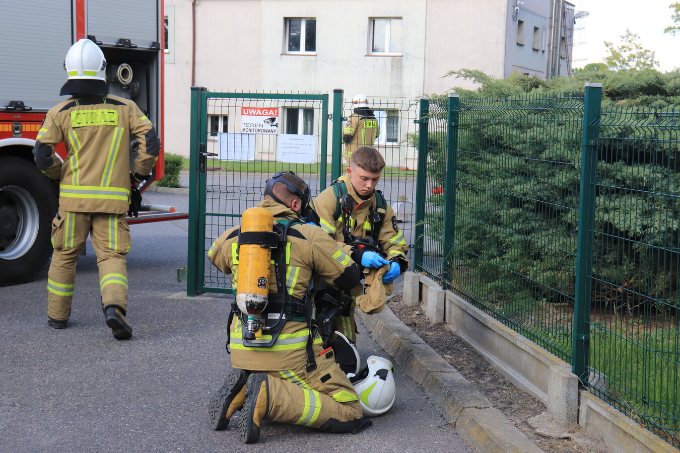 Po zakończonej ewakuacji strażacy zaznajomili się z obiektem, a następnie przeprowadzili szkolenie z udzielania pierwszej pomocy dla pracowników z wykorzystaniem defibrylatora AED. Ponadto w ramach ćwiczeń, zasymulowali akcję gaśniczą budynku administracji.