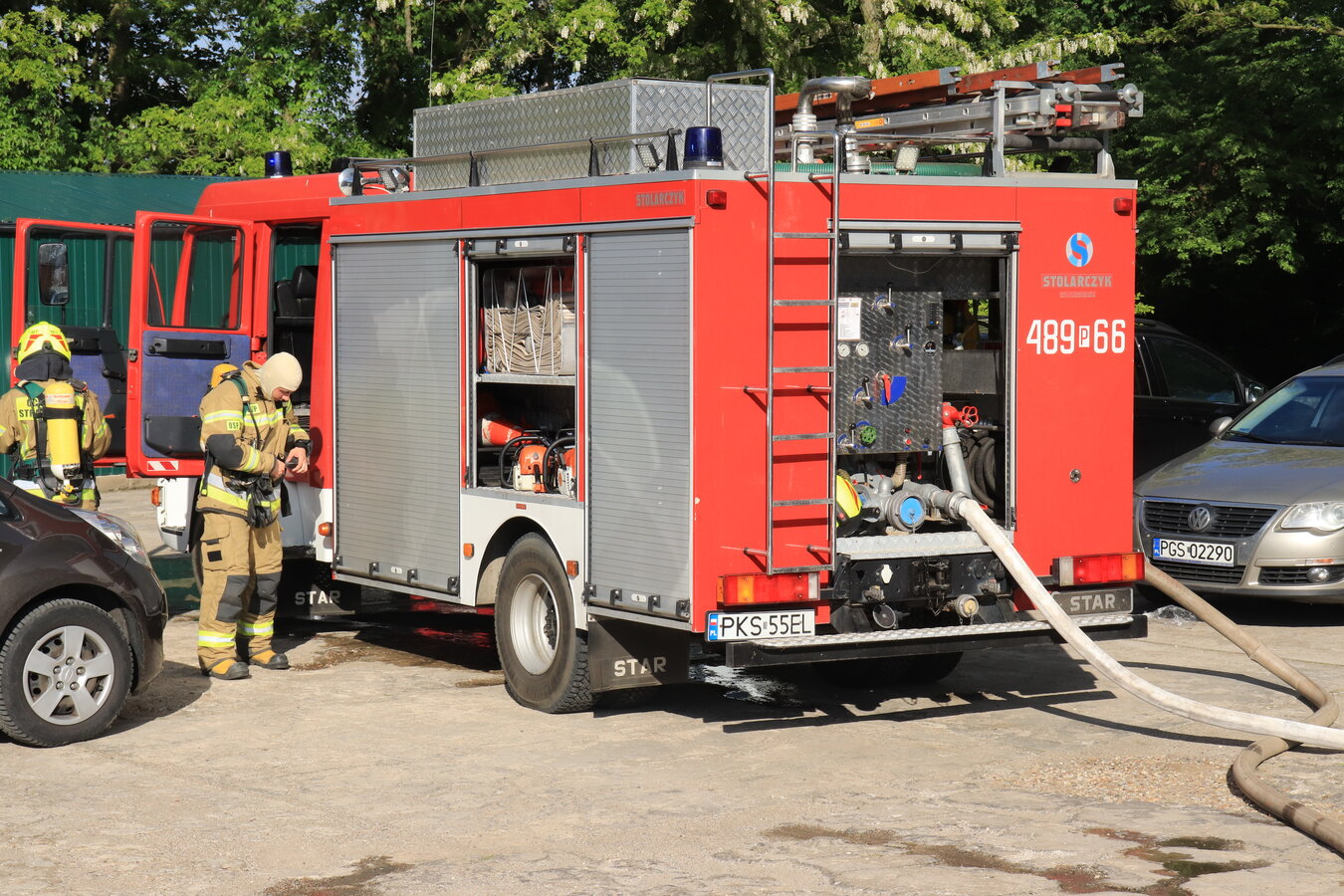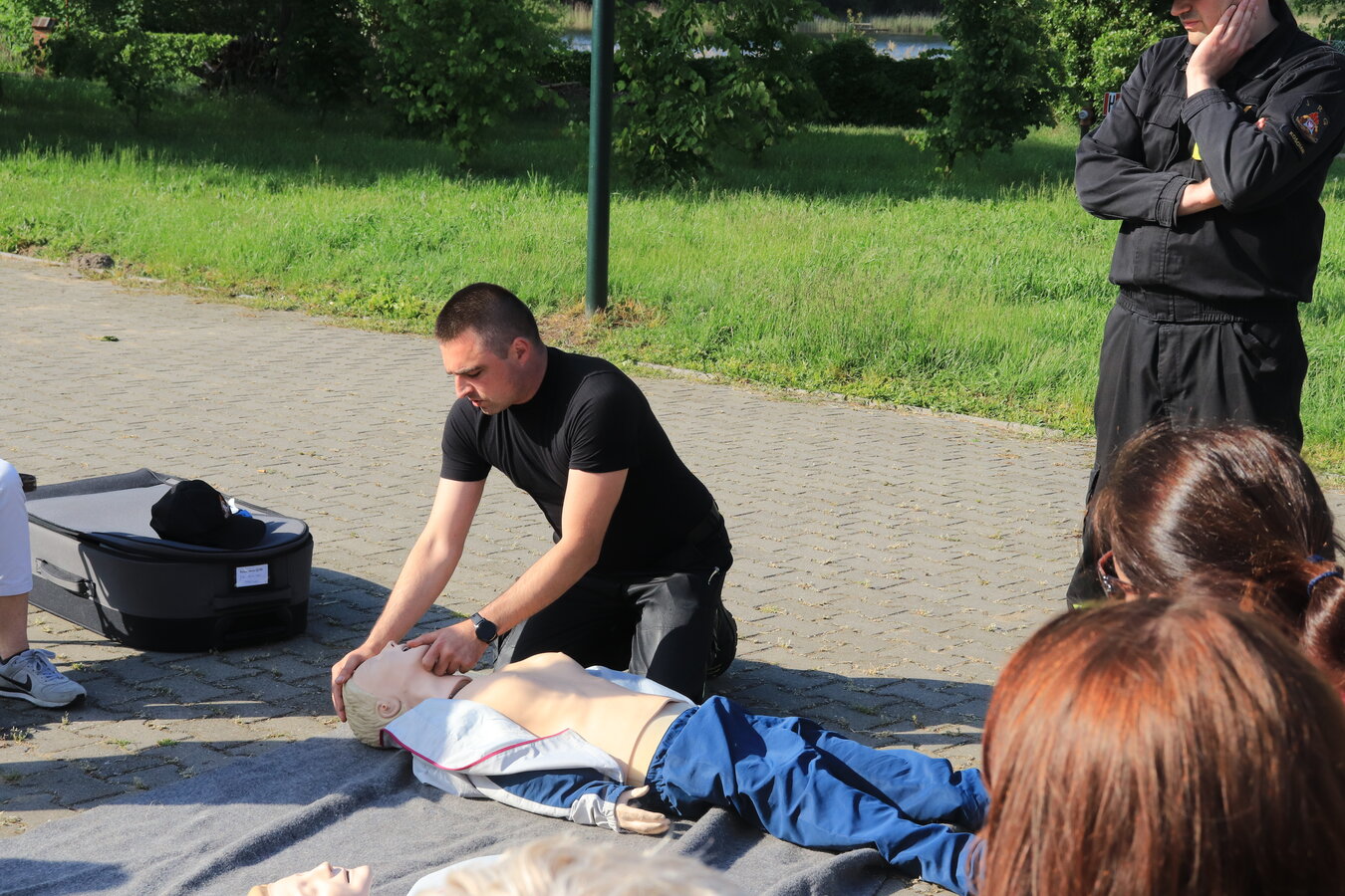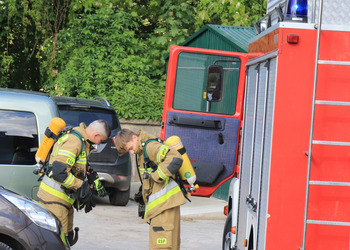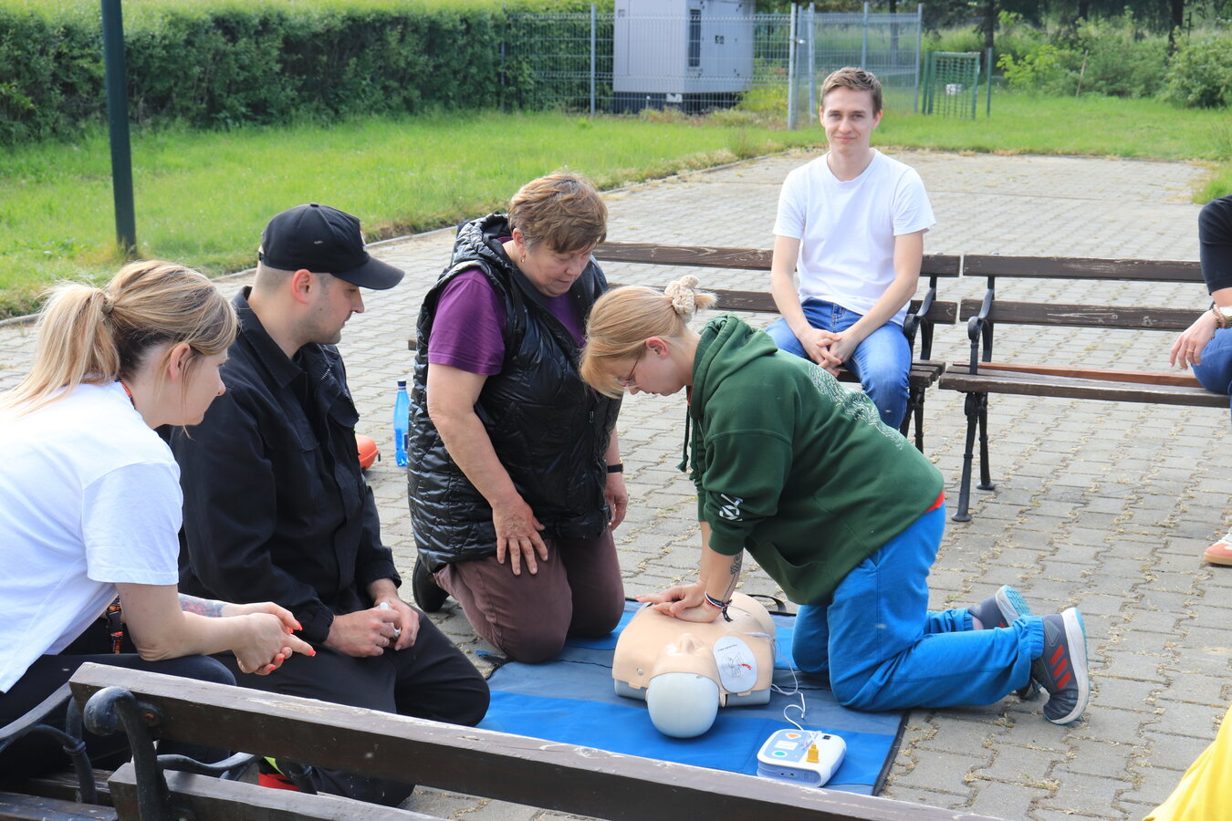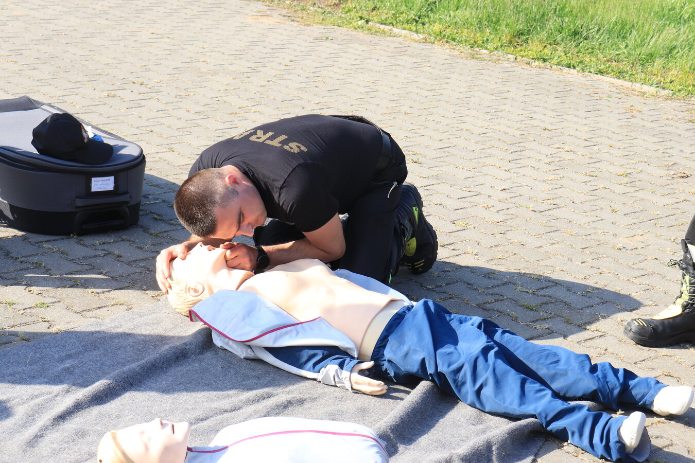 Po zakończonej ewakuacji strażacy zaznajomili się z obiektem, a następnie przeprowadzili szkolenie z udzielania pierwszej pomocy dla pracowników z wykorzystaniem defibrylatora AED. Ponadto w ramach ćwiczeń, zasymulowali akcję gaśniczą budynku administracji.