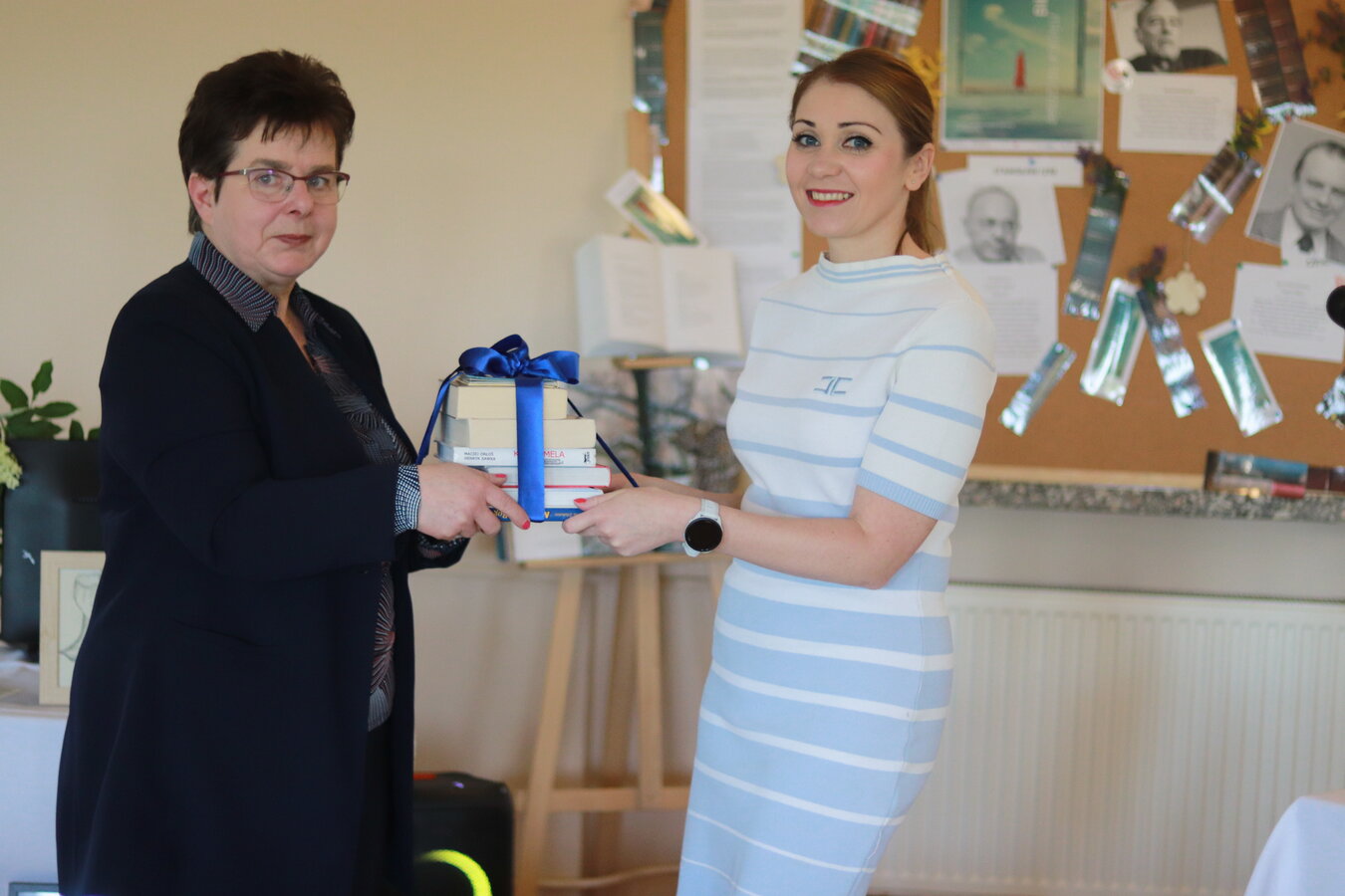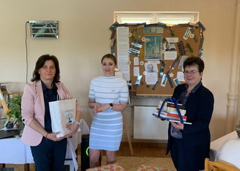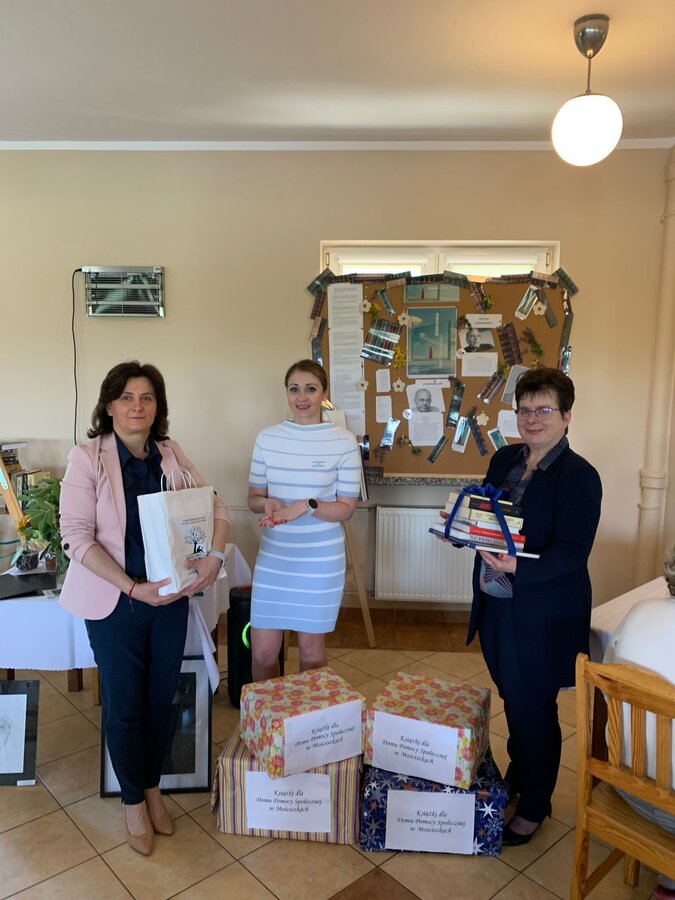 W trakcie uroczystości Panie przekazały upominki w postaci książek, które uzupełnią bogaty księgozbiór Punktu Bibliotecznego w naszym Domu.