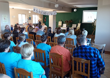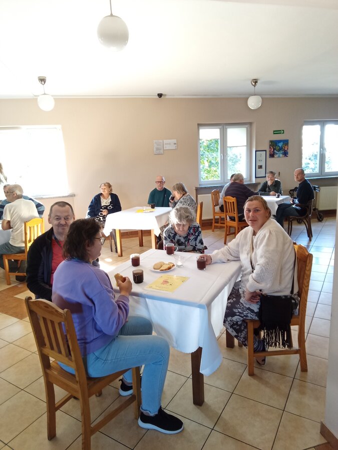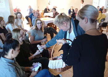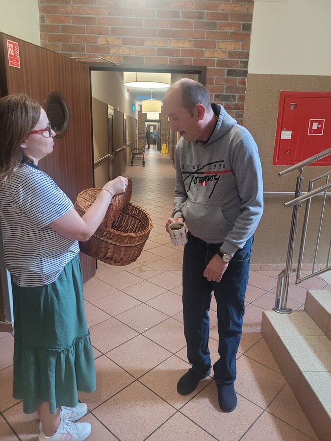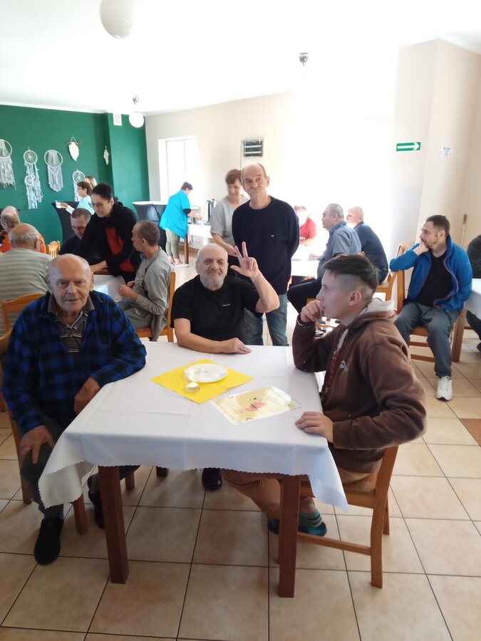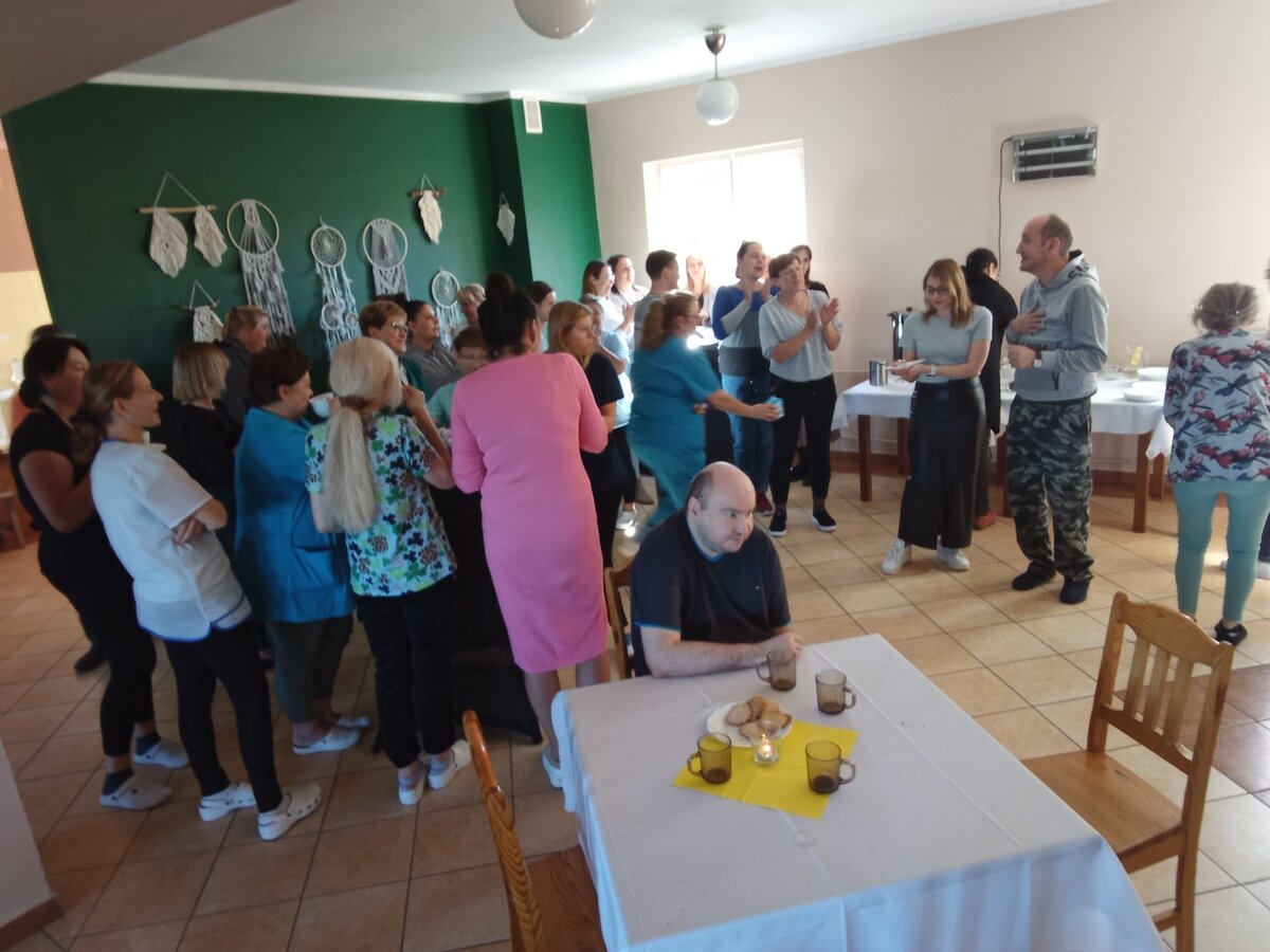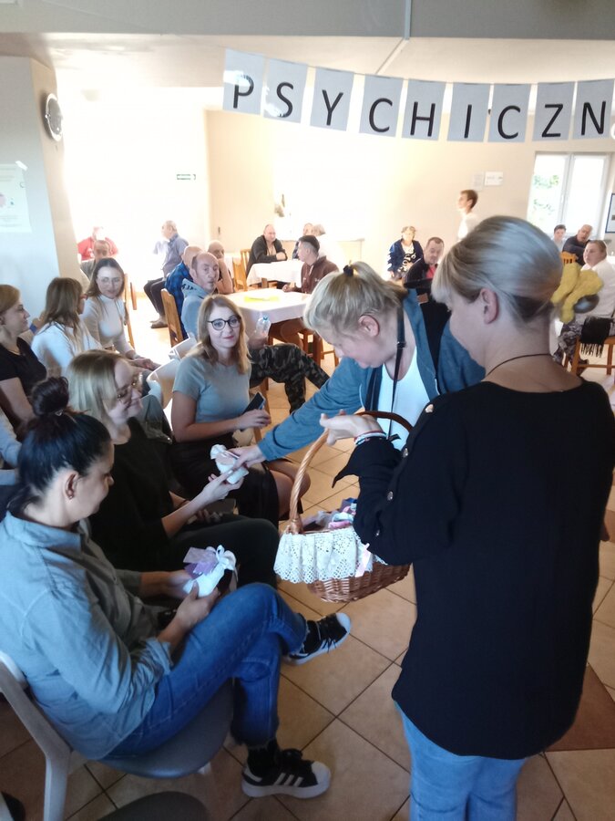 Światowy Dzień Zdrowia Psychicznego w Naszym Domu rozpoczął się od złożenia życzeń zdrowia przez Panią Dyrektor oraz Przewodniczącą Rady Mieszkańców. W dalszej części wydarzenia wyświetlono krótki film edukacyjny opowiadający o schizofrenii, a Przewodnicząca Rady Mieszkańców wręczyła upominki przygotowane przez mieszkańców podczas terapii zajęciowej. Na zakończenie spotkania wszyscy uczestnicy mogli skosztować słodkiego poczęstunku i wypić wspólną kawę, co sprzyjało rozmowom i integracji mieszkańców oraz pracowników. Panowie Starosta oraz Wicestarosta nie mogli odwiedzić nas tego dnia, jednak przesłali dla pracowników i mieszkańców serdeczne życzenia oraz drobny upominek.
