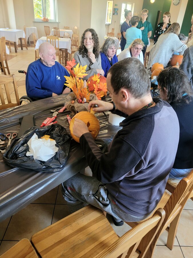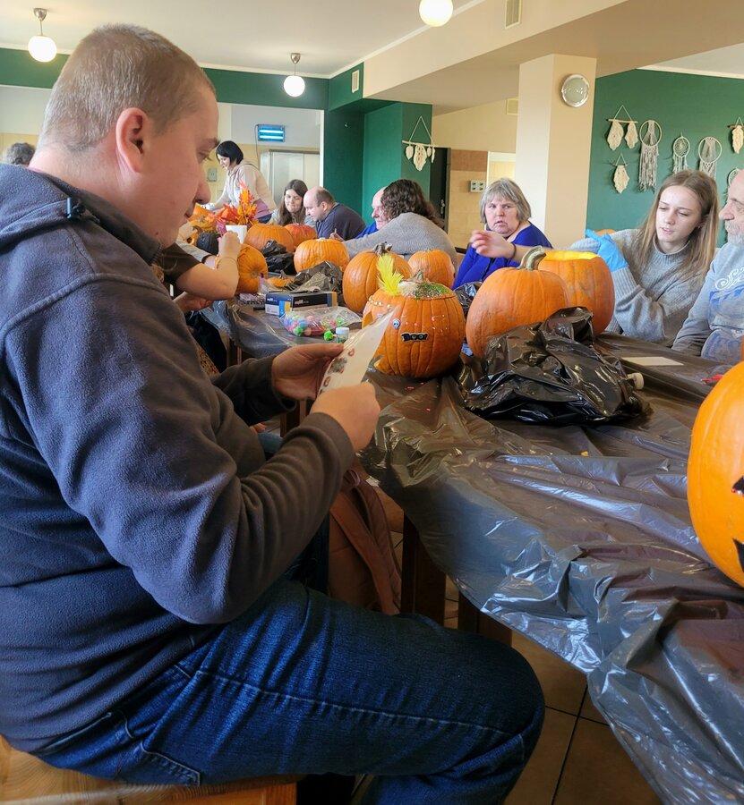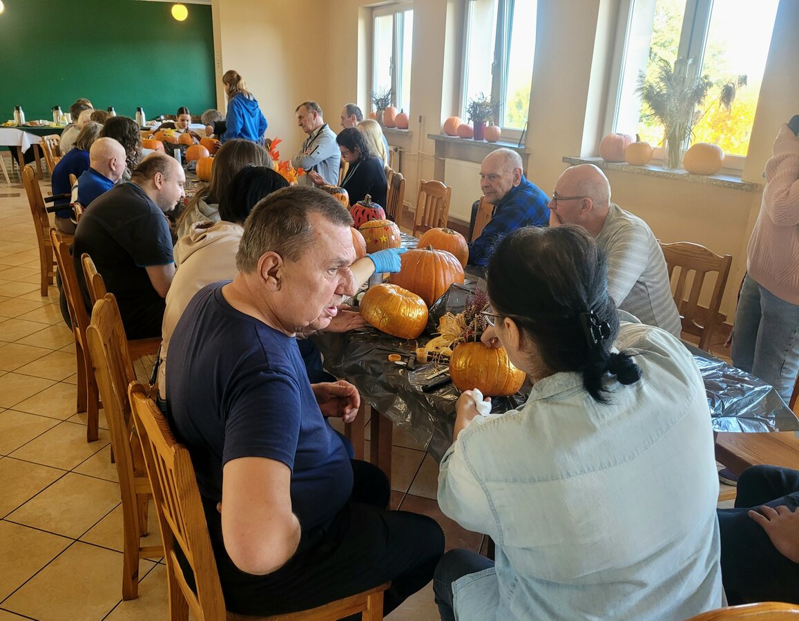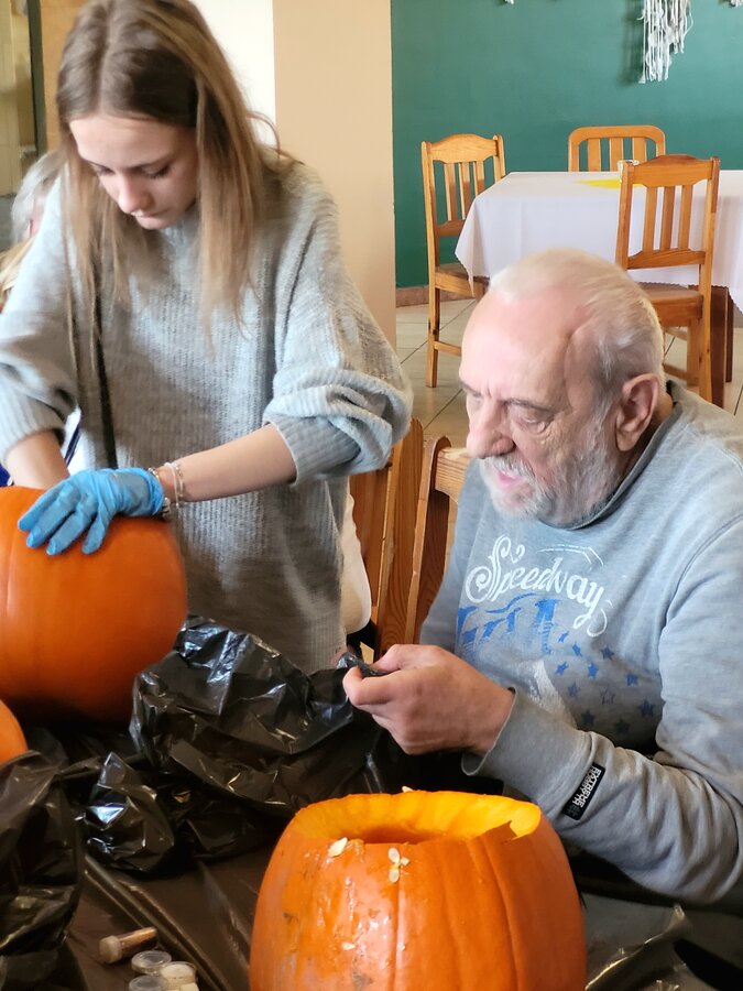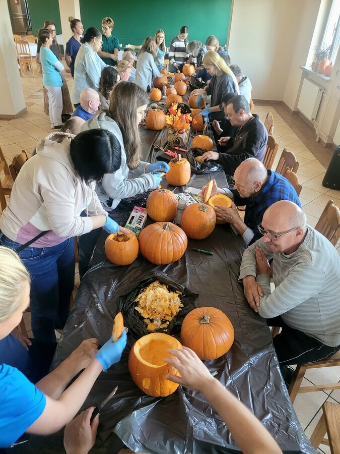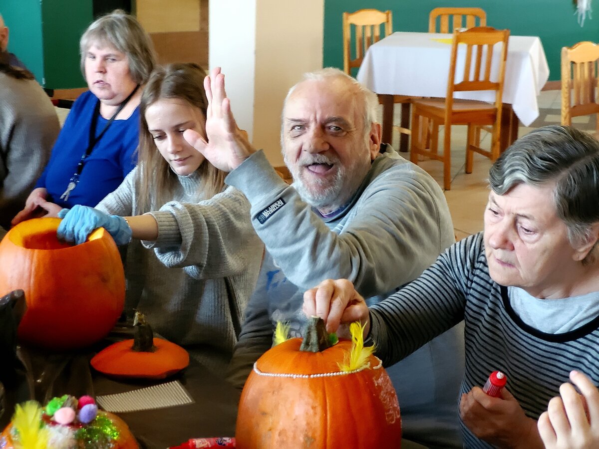 Odwiedzili nas wolontariusze, z zespołu szkół w Krzywiniu, z którymi wspólnie ozdabialiśmy dynie! Mieszkańcy chętnie zaangażowali się w kreatywną zabawę, tworząc wyjątkowe wzory i dekoracje. Dzięki pomocy naszych Gości, powstały prawdziwe dzieła sztuki, które wprowadziły jesienny nastrój do Naszego Domu. Serdecznie dziękujemy wolontariuszom za ich czas i zaangażowanie!