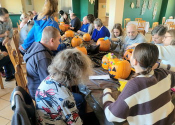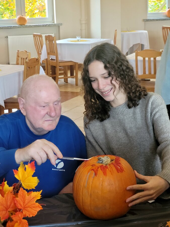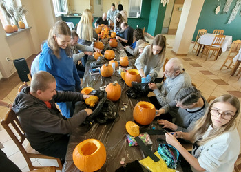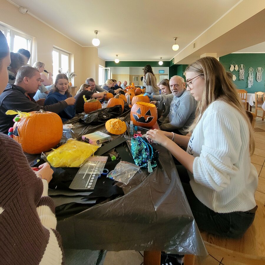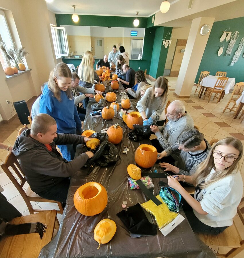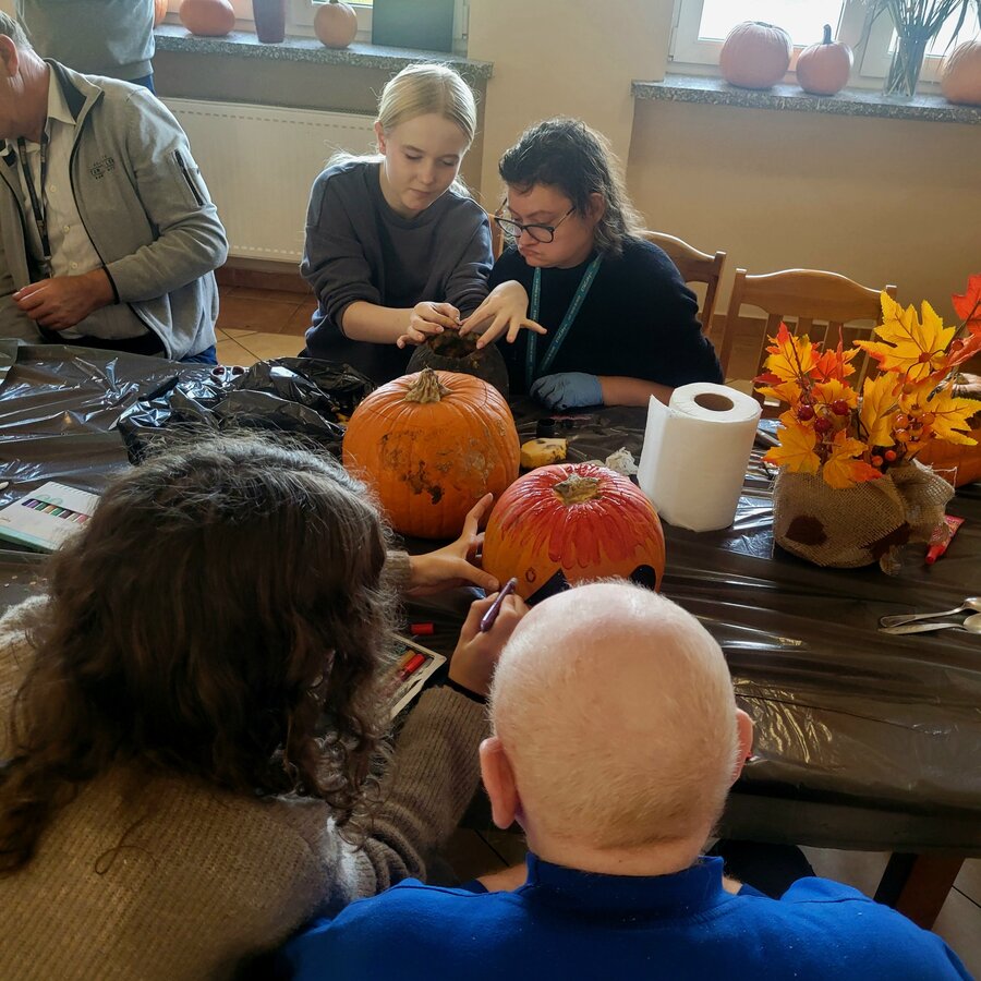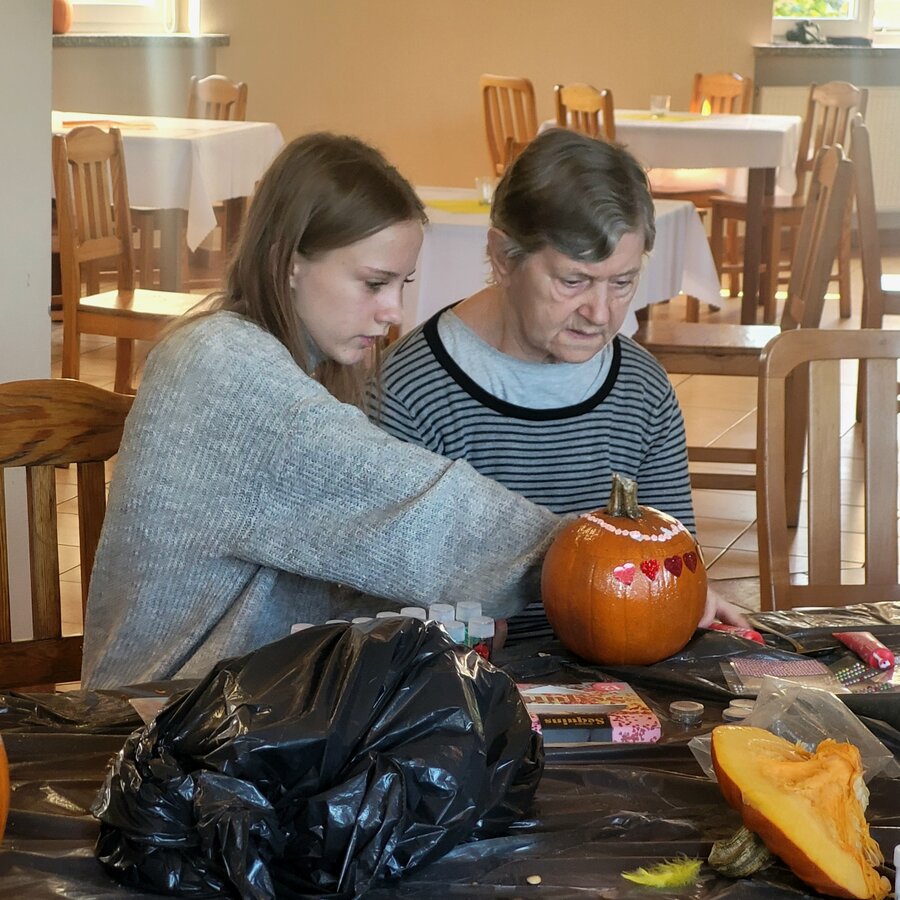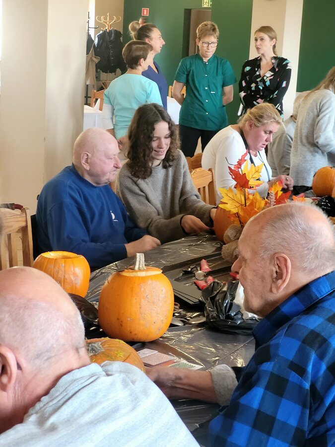 Odwiedzili nas wolontariusze, z zespołu szkół w Krzywiniu, z którymi wspólnie ozdabialiśmy dynie! Mieszkańcy chętnie zaangażowali się w kreatywną zabawę, tworząc wyjątkowe wzory i dekoracje. Dzięki pomocy naszych Gości, powstały prawdziwe dzieła sztuki, które wprowadziły jesienny nastrój do Naszego Domu. Serdecznie dziękujemy wolontariuszom za ich czas i zaangażowanie!
