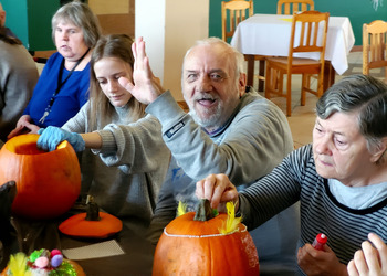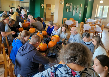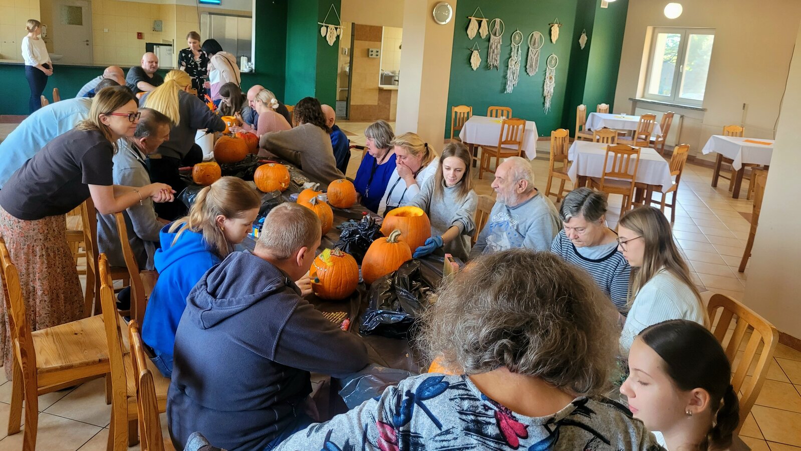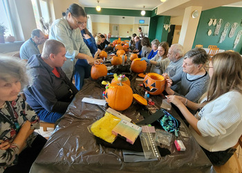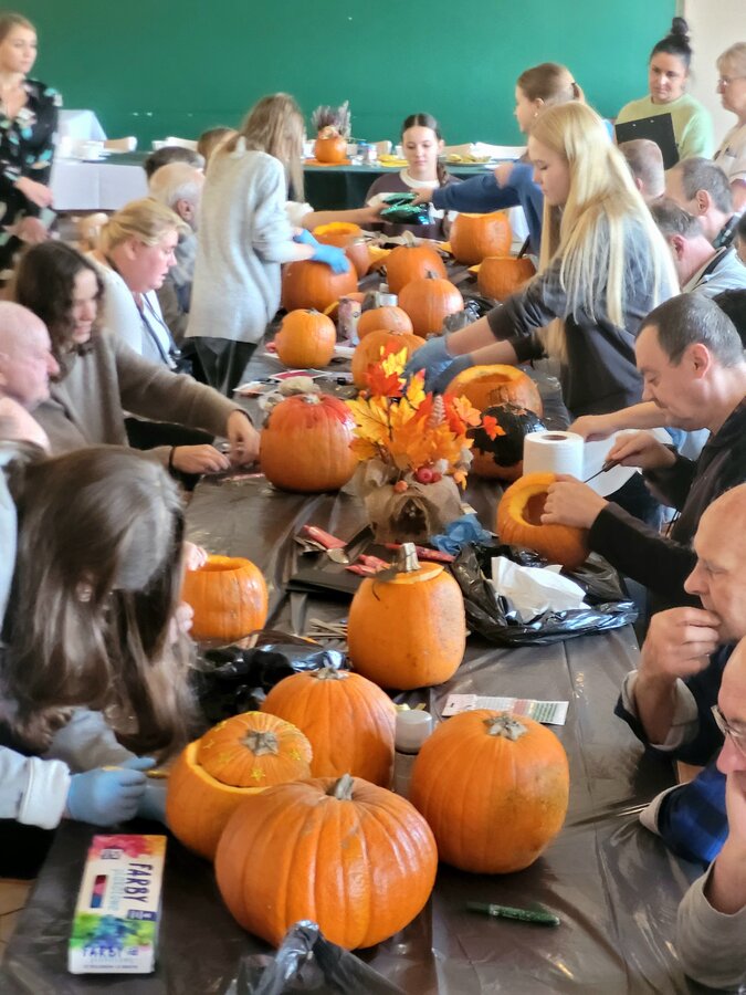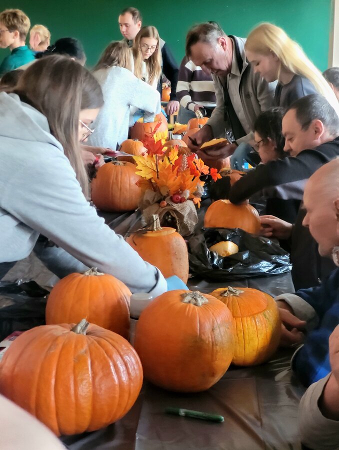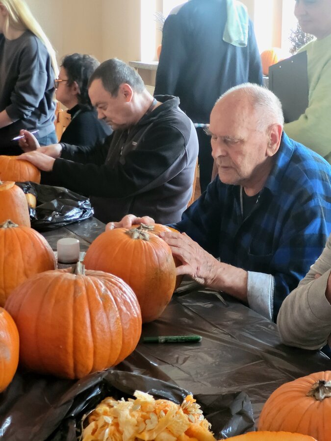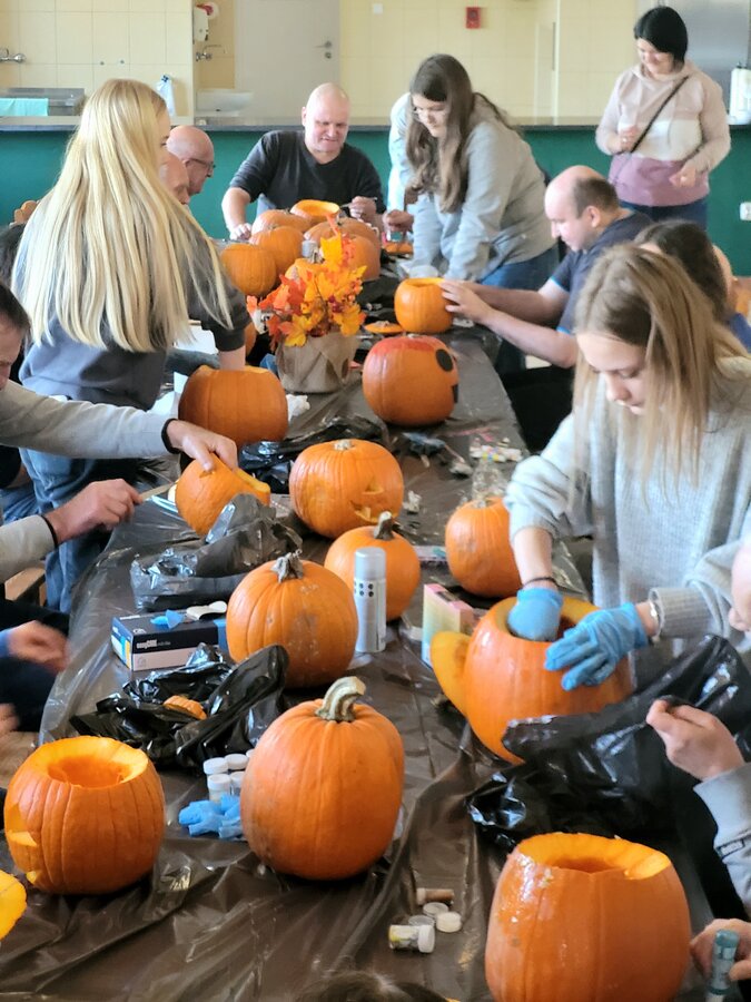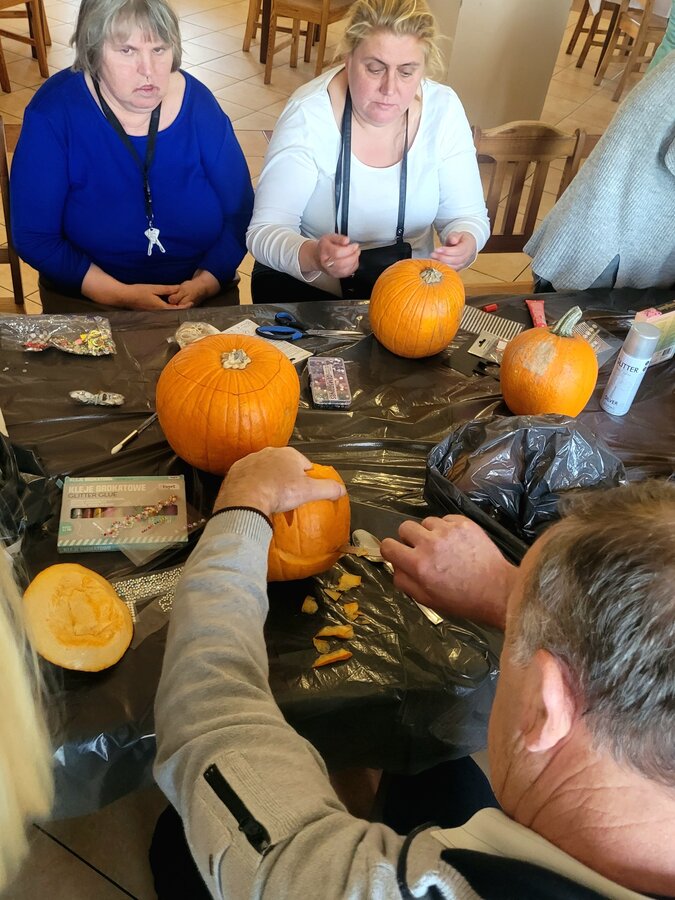 Odwiedzili nas wolontariusze, z zespołu szkół w Krzywiniu, z którymi wspólnie ozdabialiśmy dynie! Mieszkańcy chętnie zaangażowali się w kreatywną zabawę, tworząc wyjątkowe wzory i dekoracje. Dzięki pomocy naszych Gości, powstały prawdziwe dzieła sztuki, które wprowadziły jesienny nastrój do Naszego Domu. Serdecznie dziękujemy wolontariuszom za ich czas i zaangażowanie!