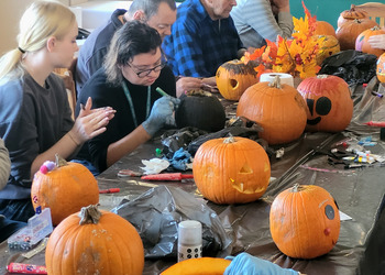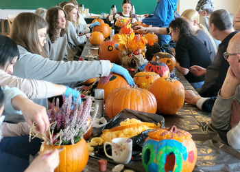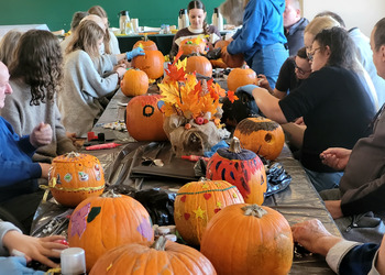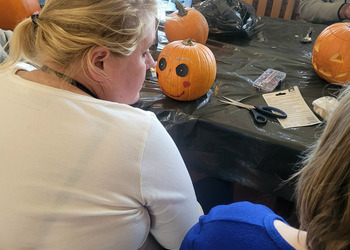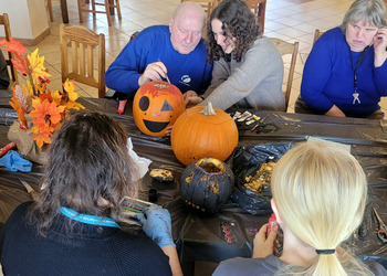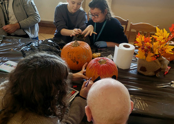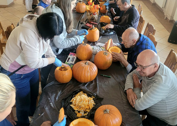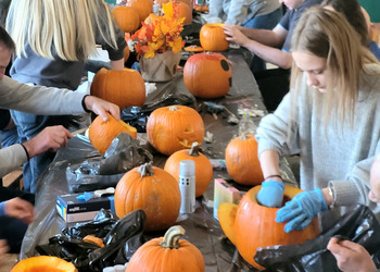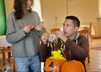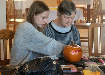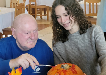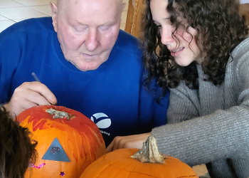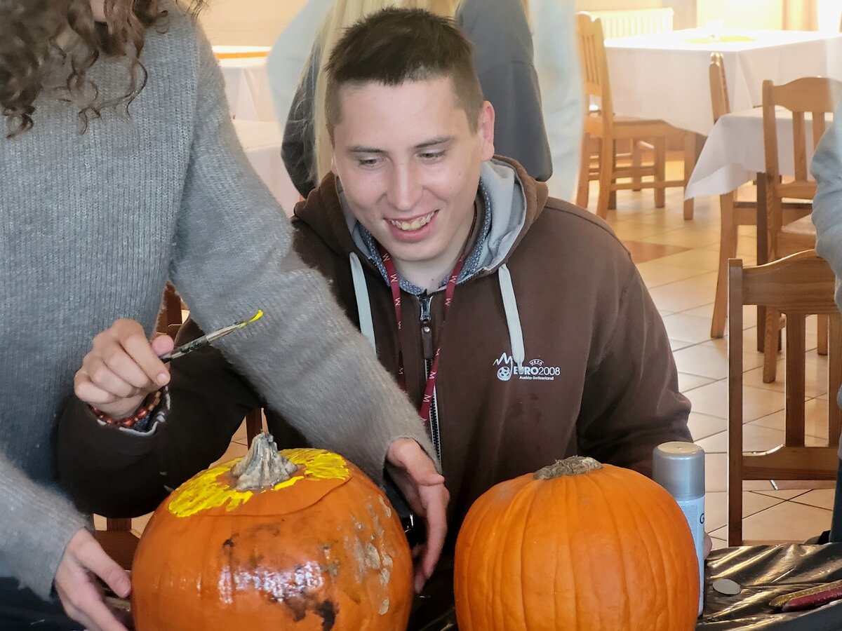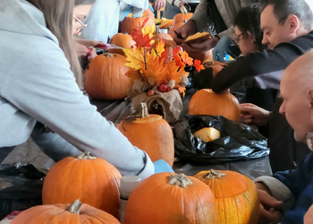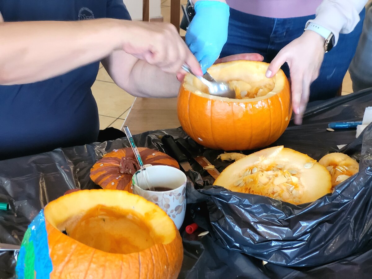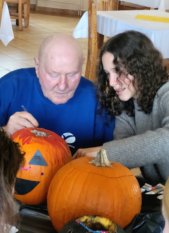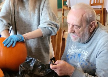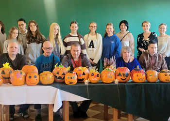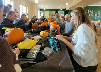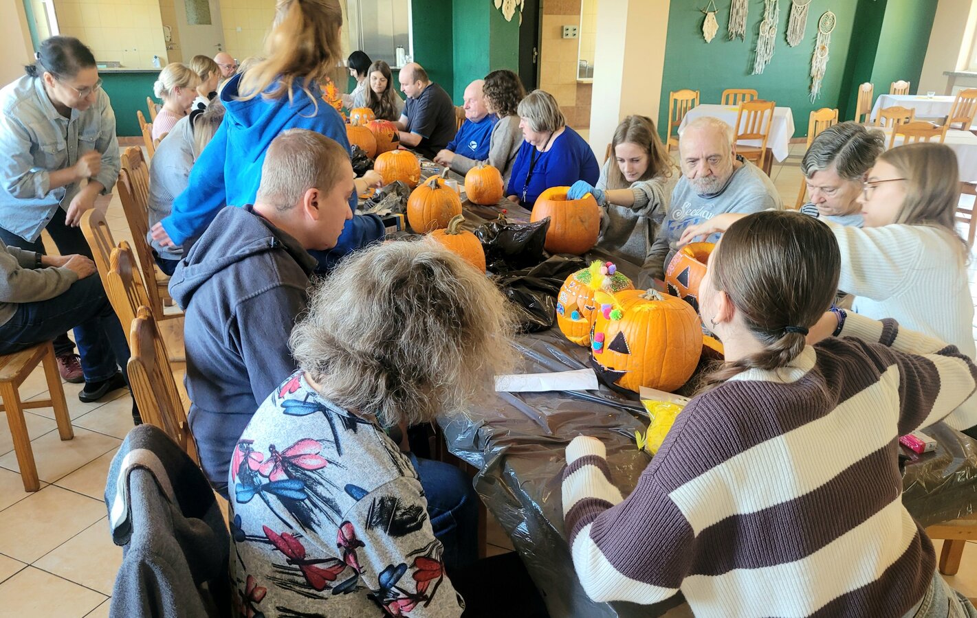 Odwiedzili nas wolontariusze, z zespołu szkół w Krzywiniu, z którymi wspólnie ozdabialiśmy dynie! Mieszkańcy chętnie zaangażowali się w kreatywną zabawę, tworząc wyjątkowe wzory i dekoracje. Dzięki pomocy naszych Gości, powstały prawdziwe dzieła sztuki, które wprowadziły jesienny nastrój do Naszego Domu. Serdecznie dziękujemy wolontariuszom za ich czas i zaangażowanie!